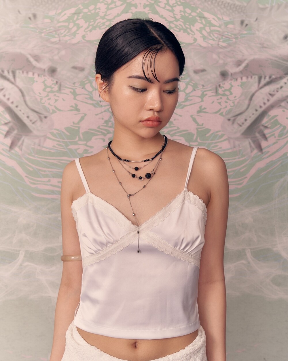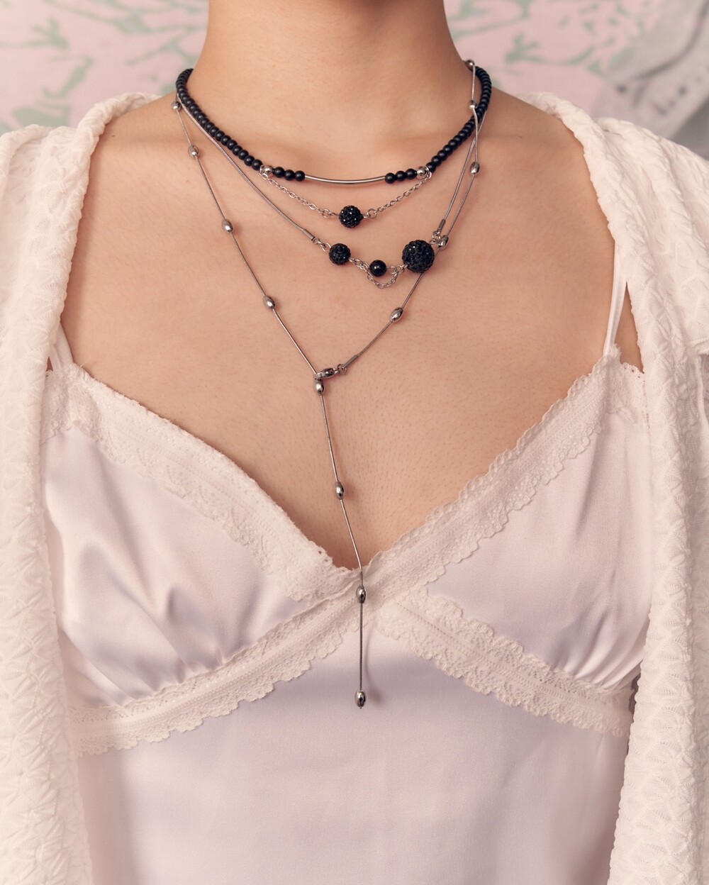 미지의 행성이 연결된듯한 오묘한 분위기를 자아내는 dot chain necklace 입니다.