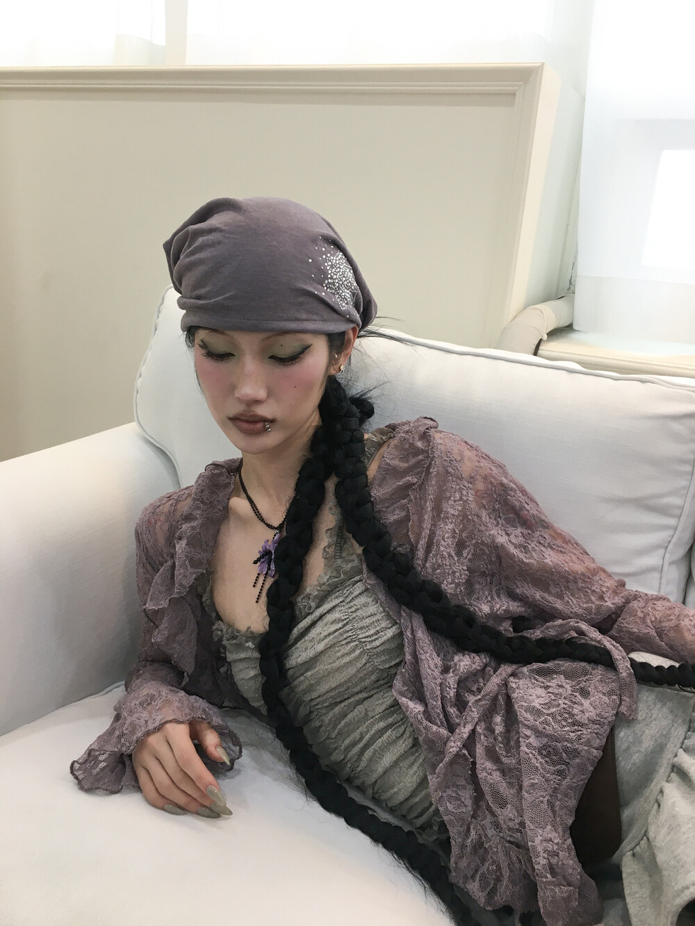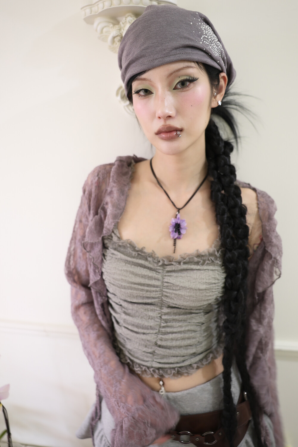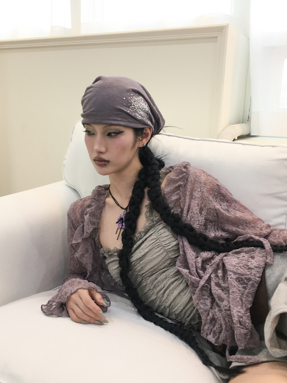 [Pink orchid house] Frill lace cardigan (3color) (Purple)