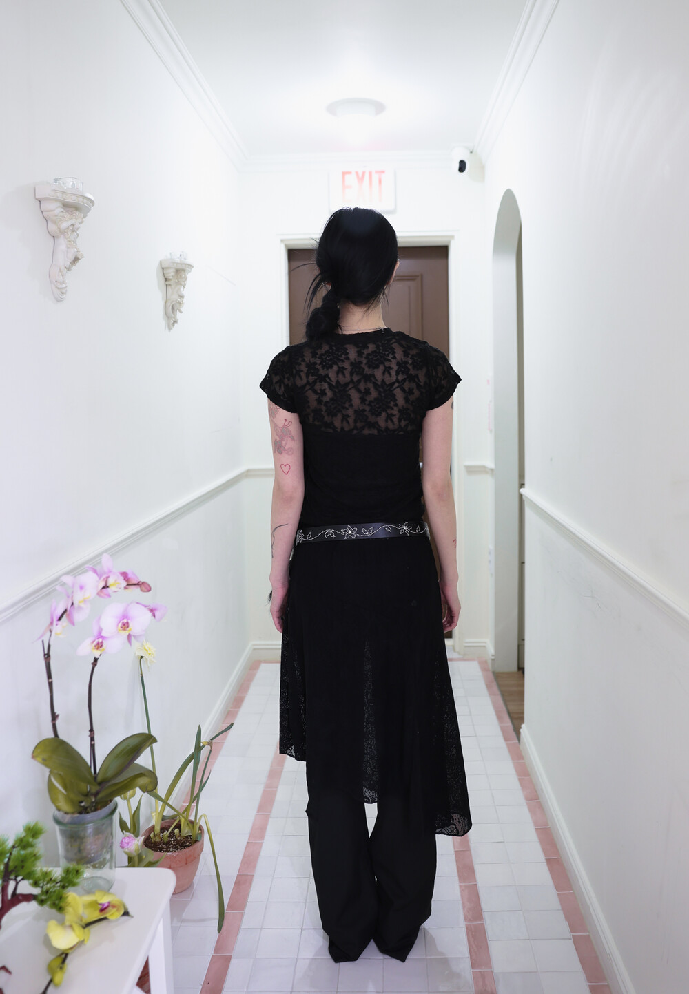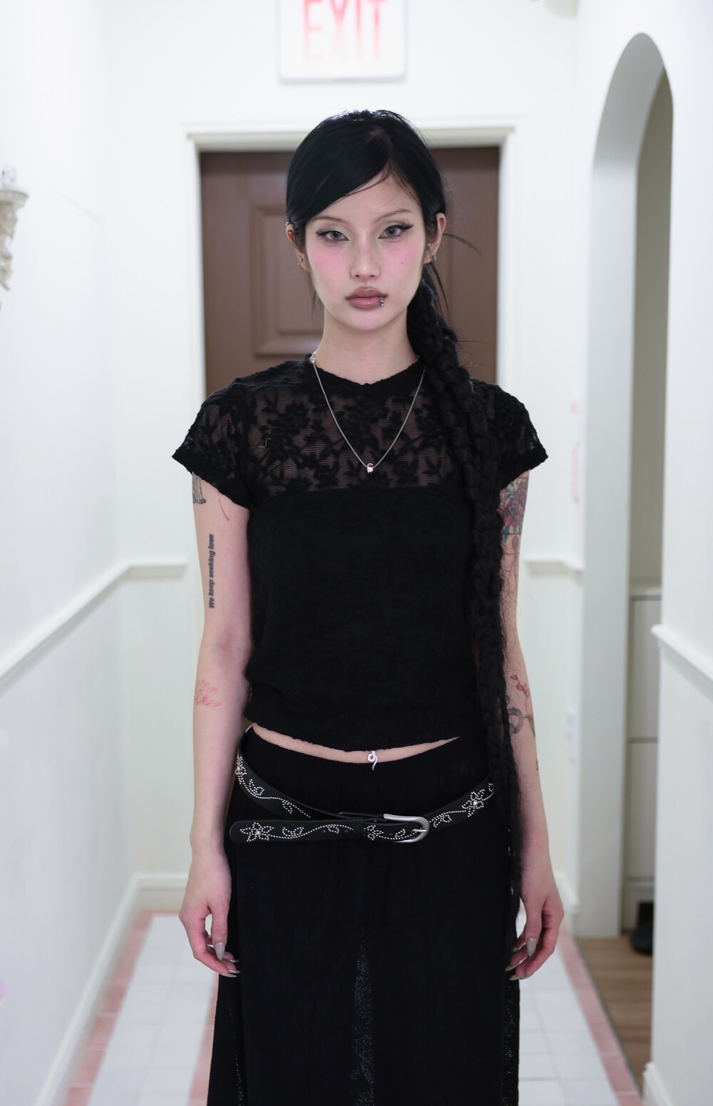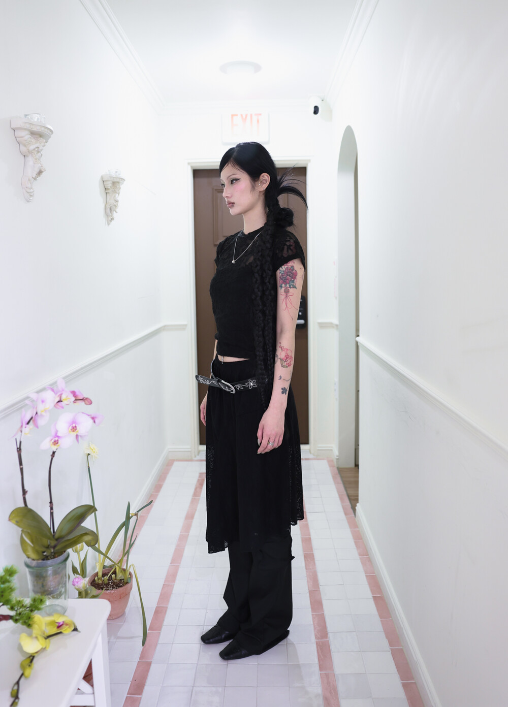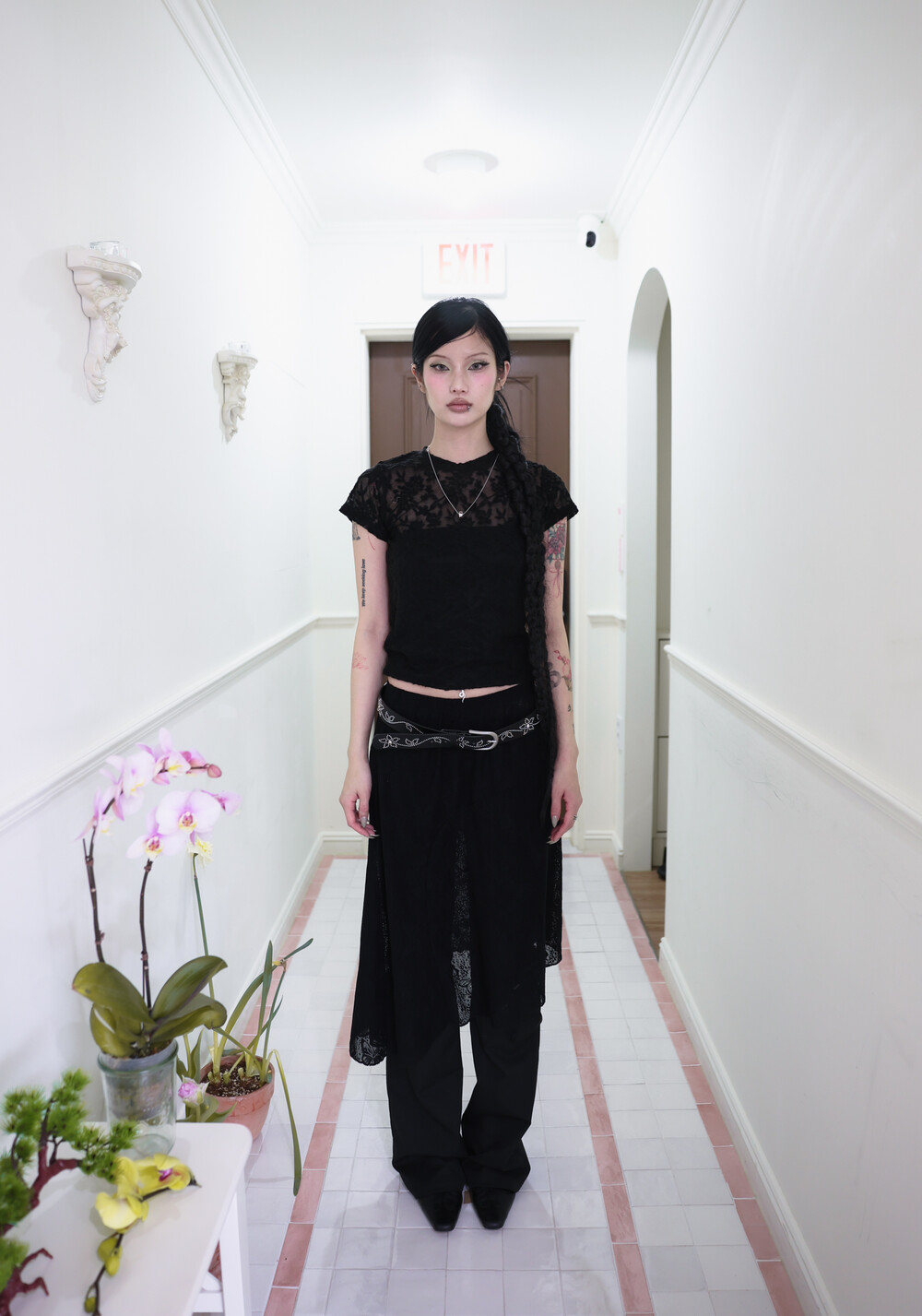 [Pink orchid house] Flower lace T (4color) (Black) *당일 발송
