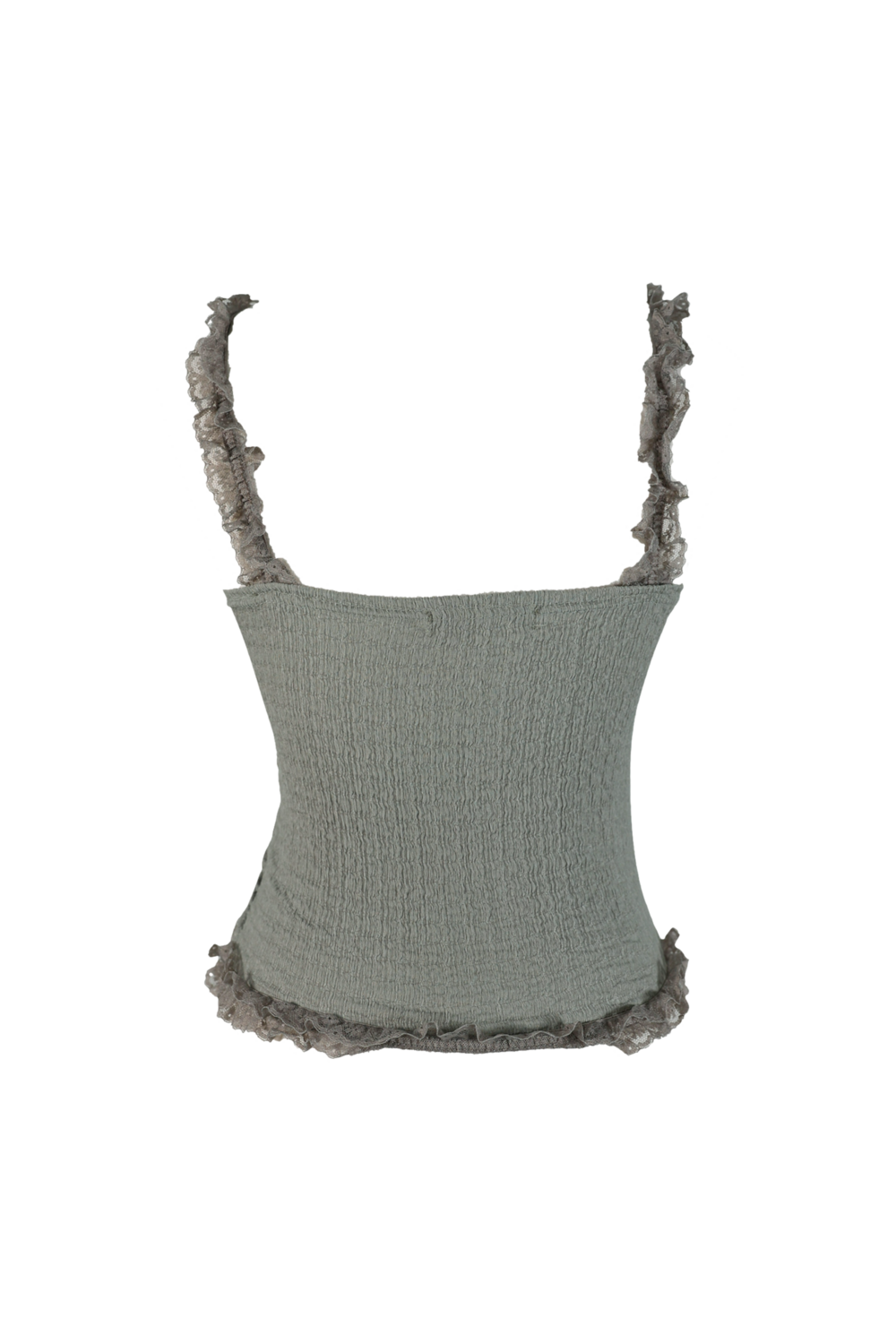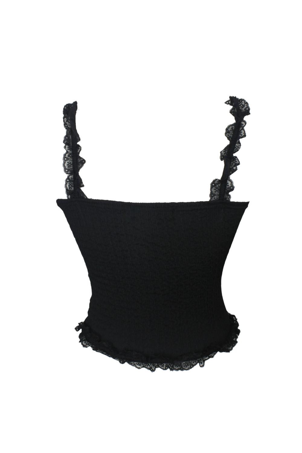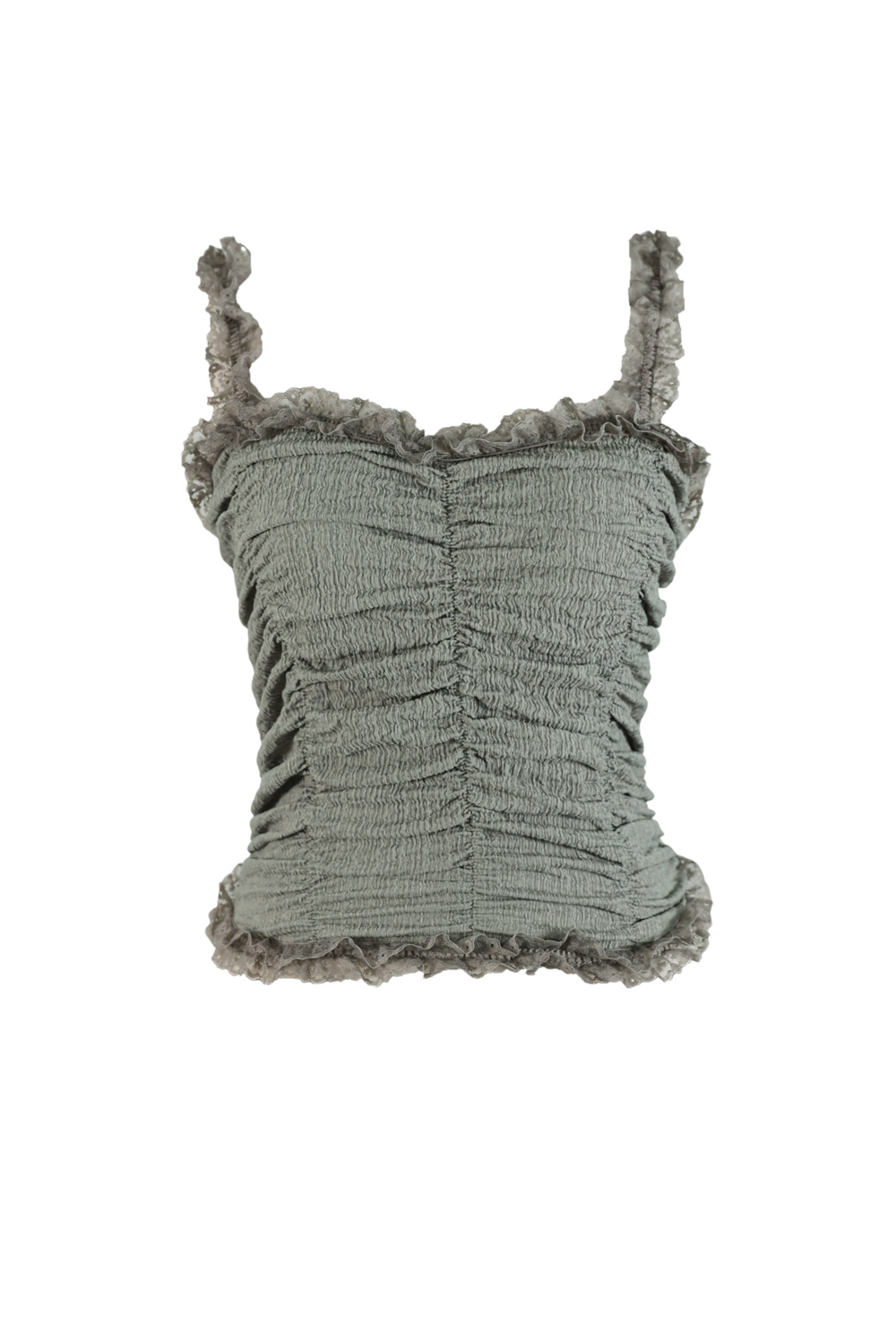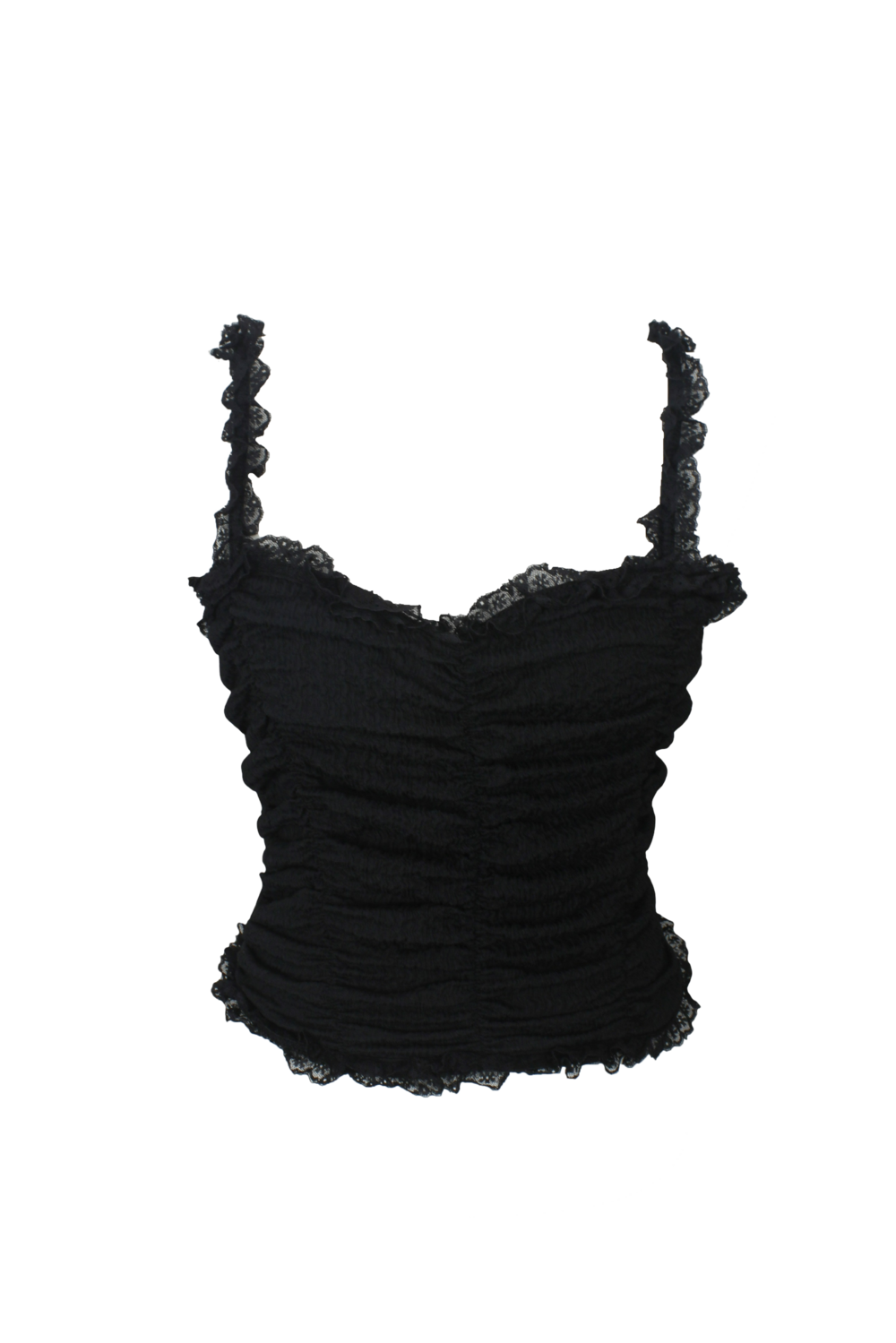 [Pink orchid house] Shirring lace frill top (3color) (White)