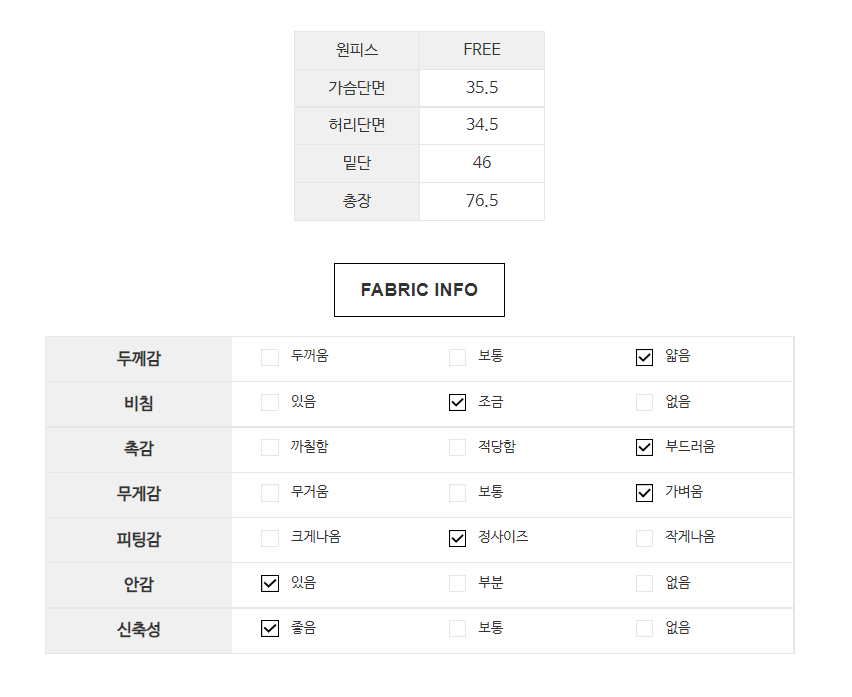 - 유연하고 소프트한 원단감으로 44- 66 착용 가능