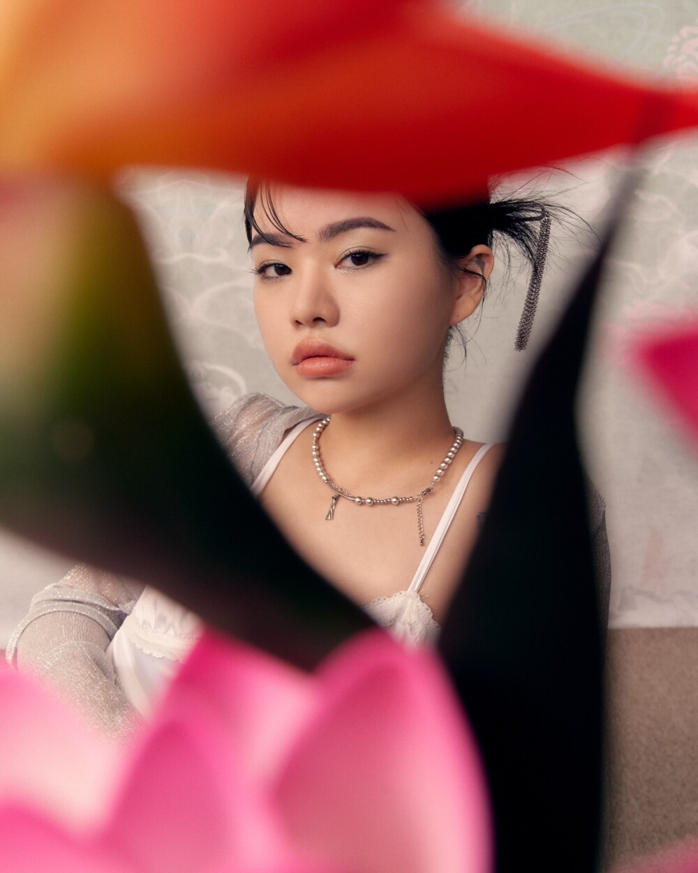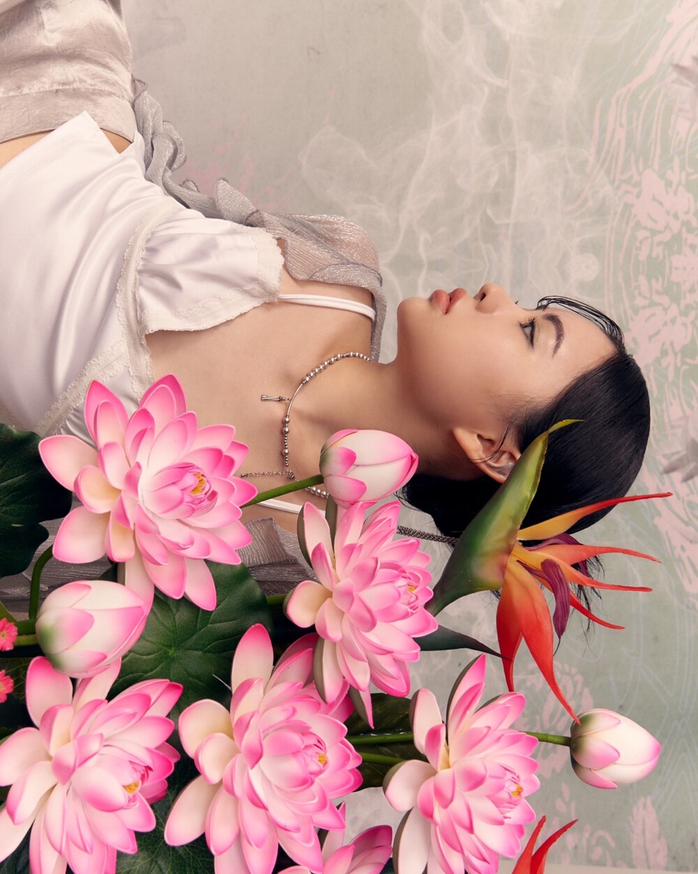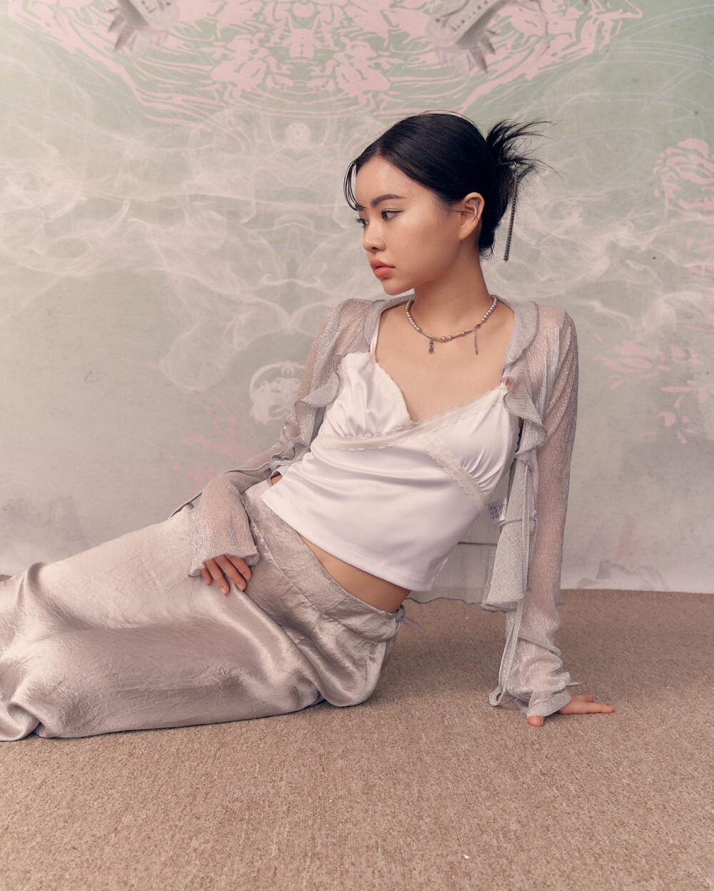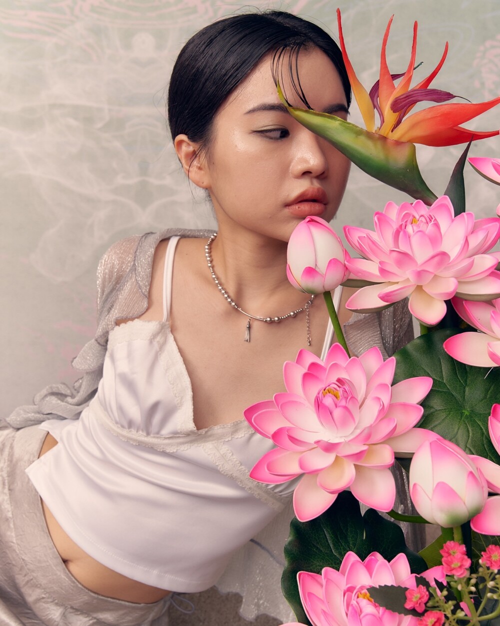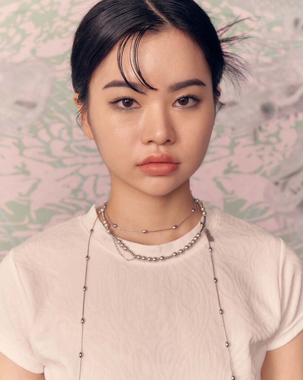 실버 컬러의 체인과 볼을 사용하여, 공상적이면서도 동양적인 구슬 목걸이