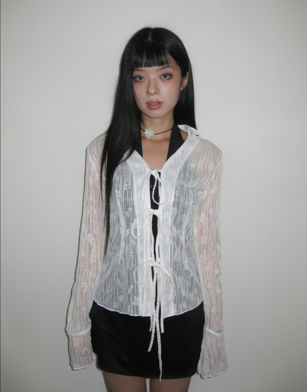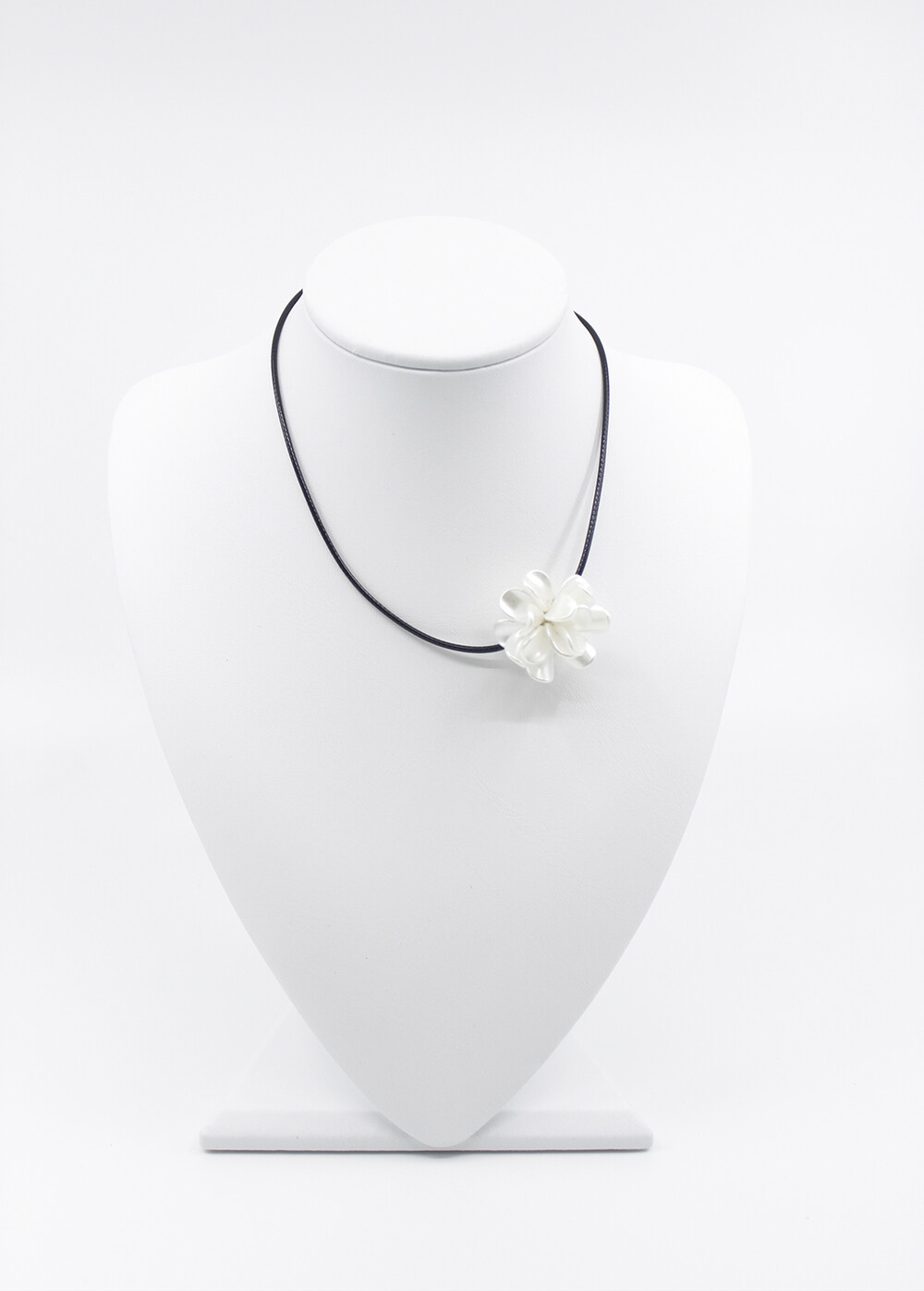 꽃잎 모양의 비즈를 엮어 만든 하얀 장미 펜던트가 매력적인 초커입니다.