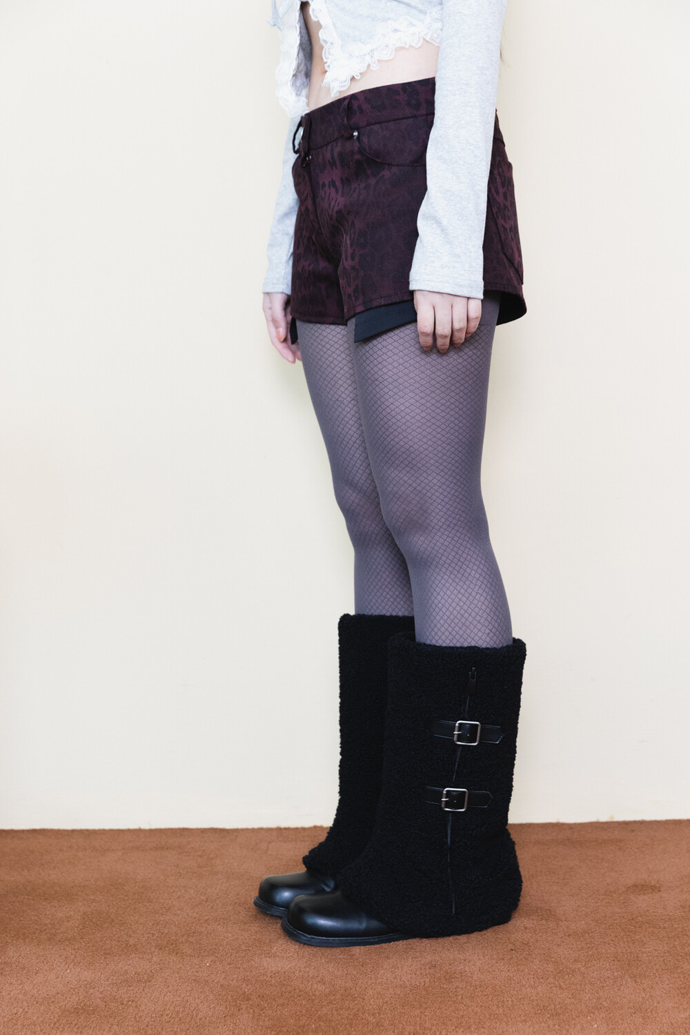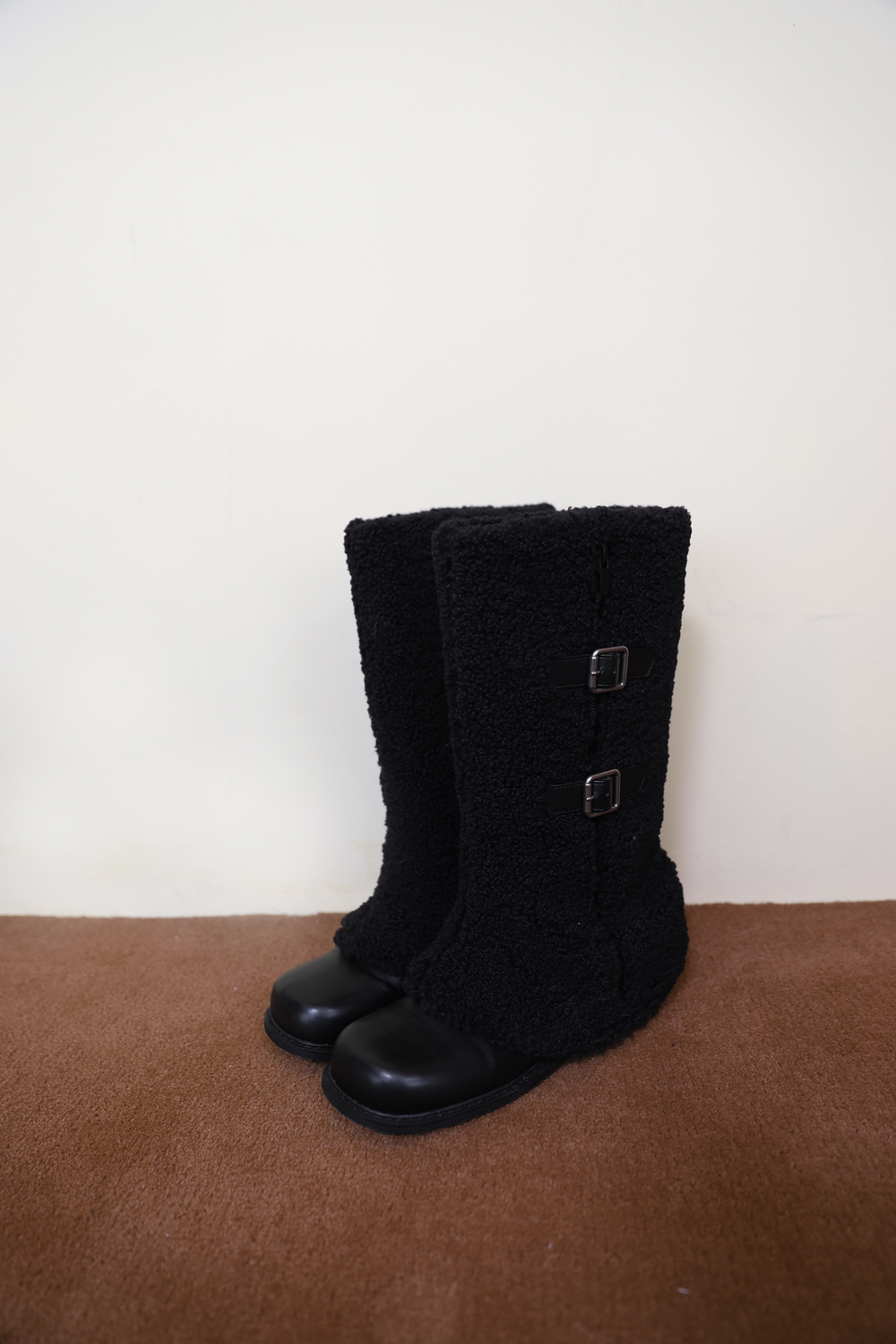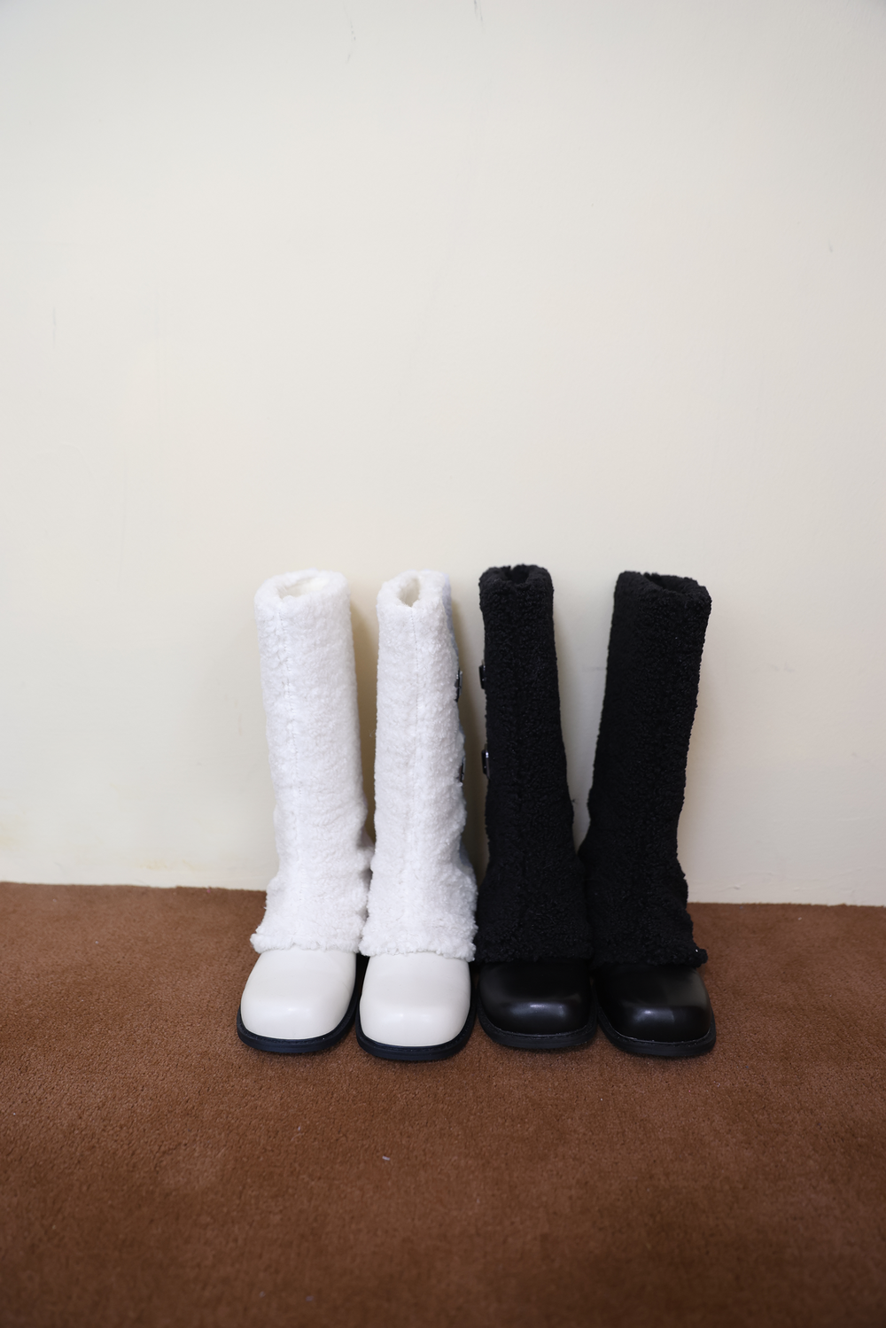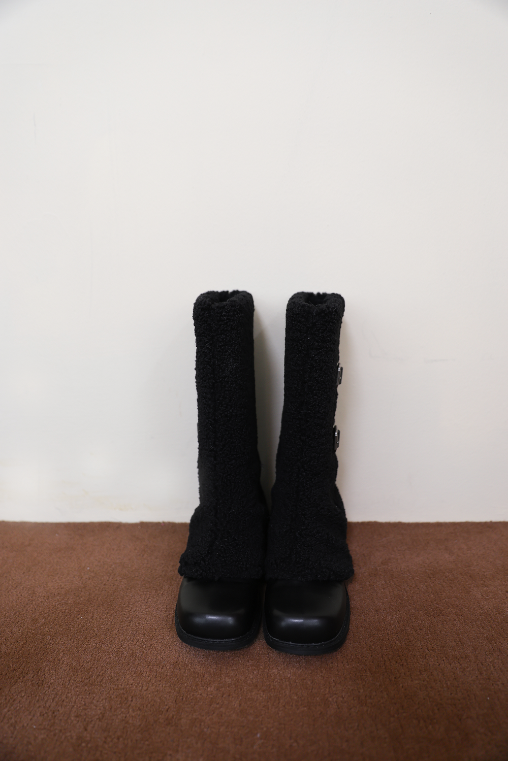 - 레더 부츠에 퍼 원단이 레이어드 된 디자인