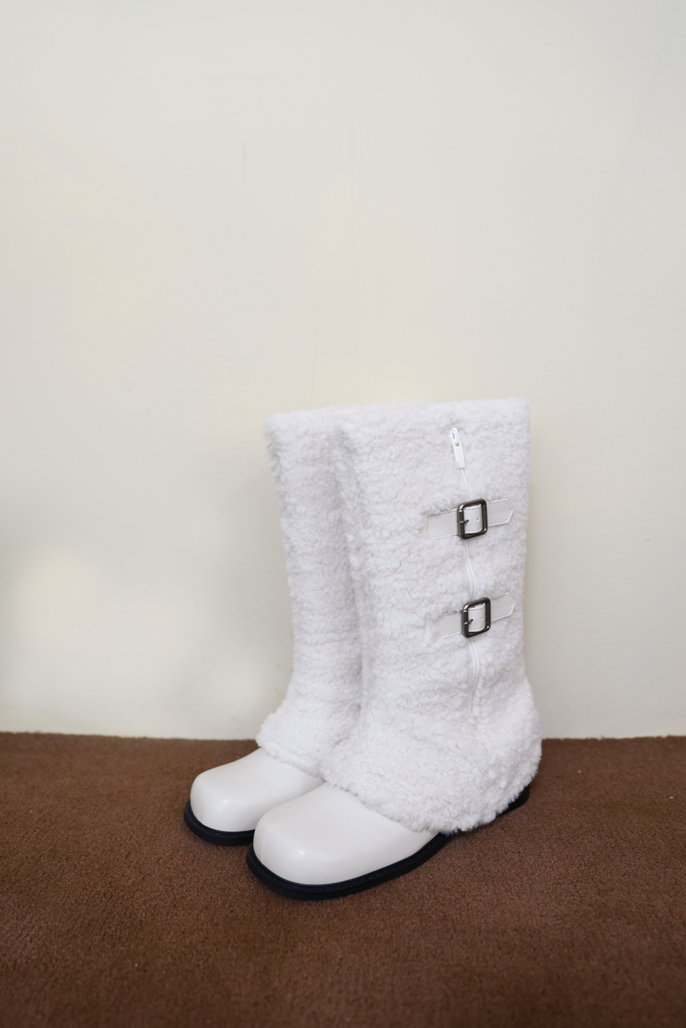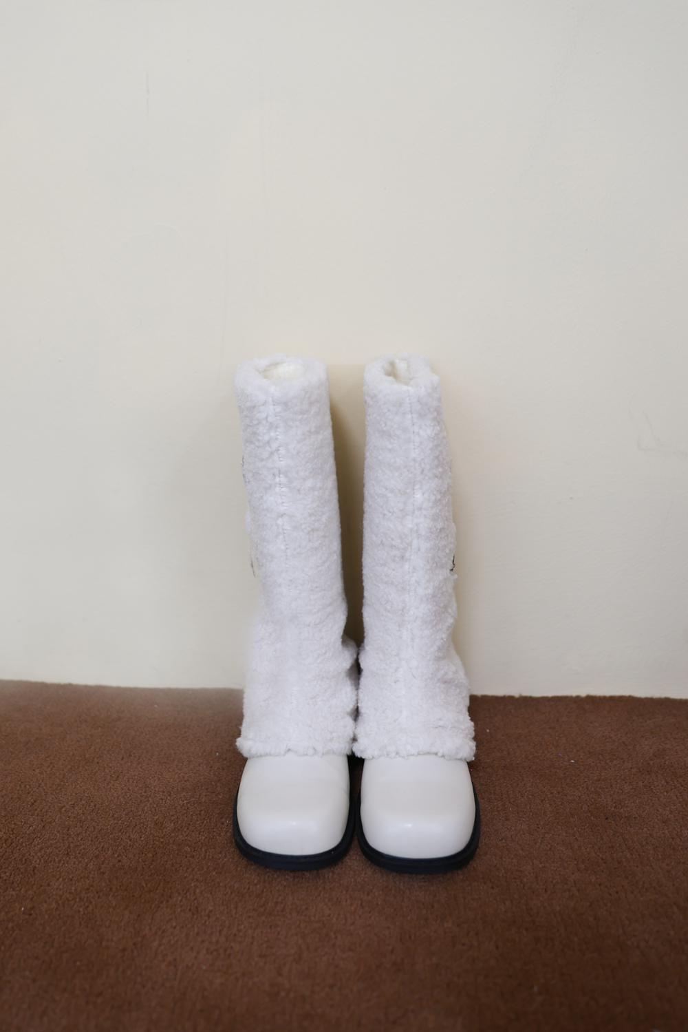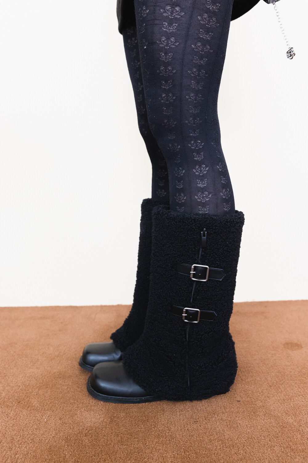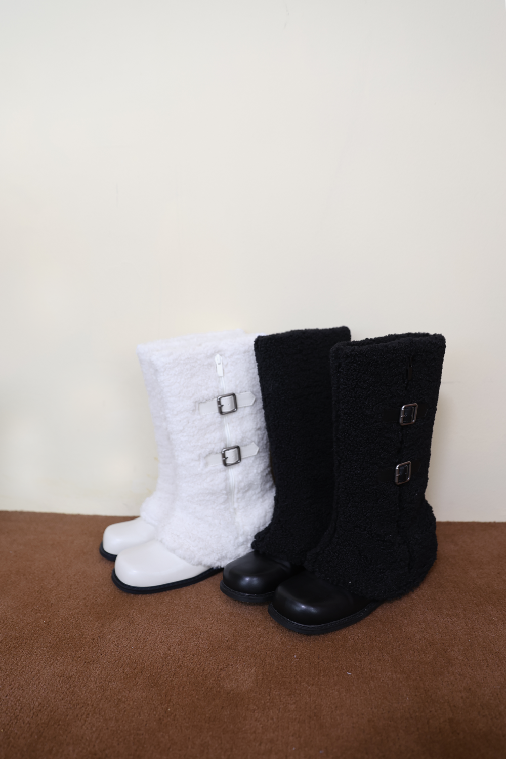 - 레더 부츠에 퍼 원단이 레이어드 된 디자인
