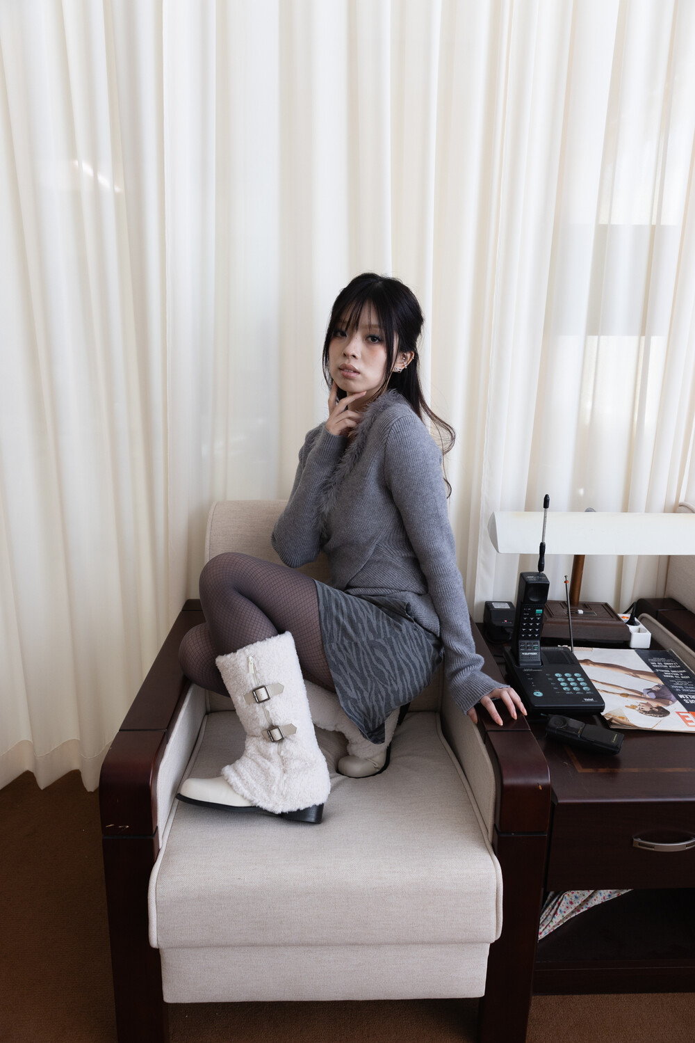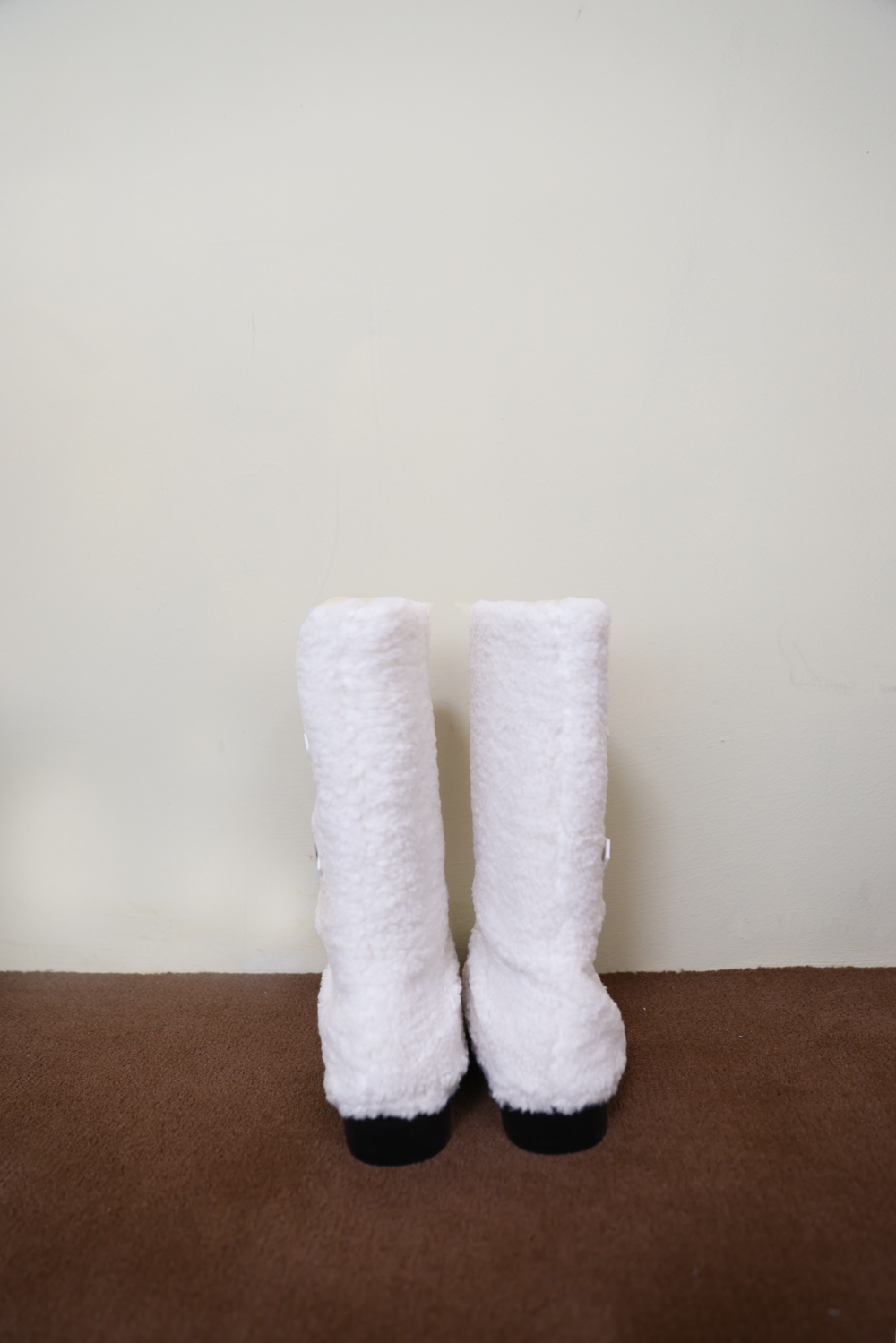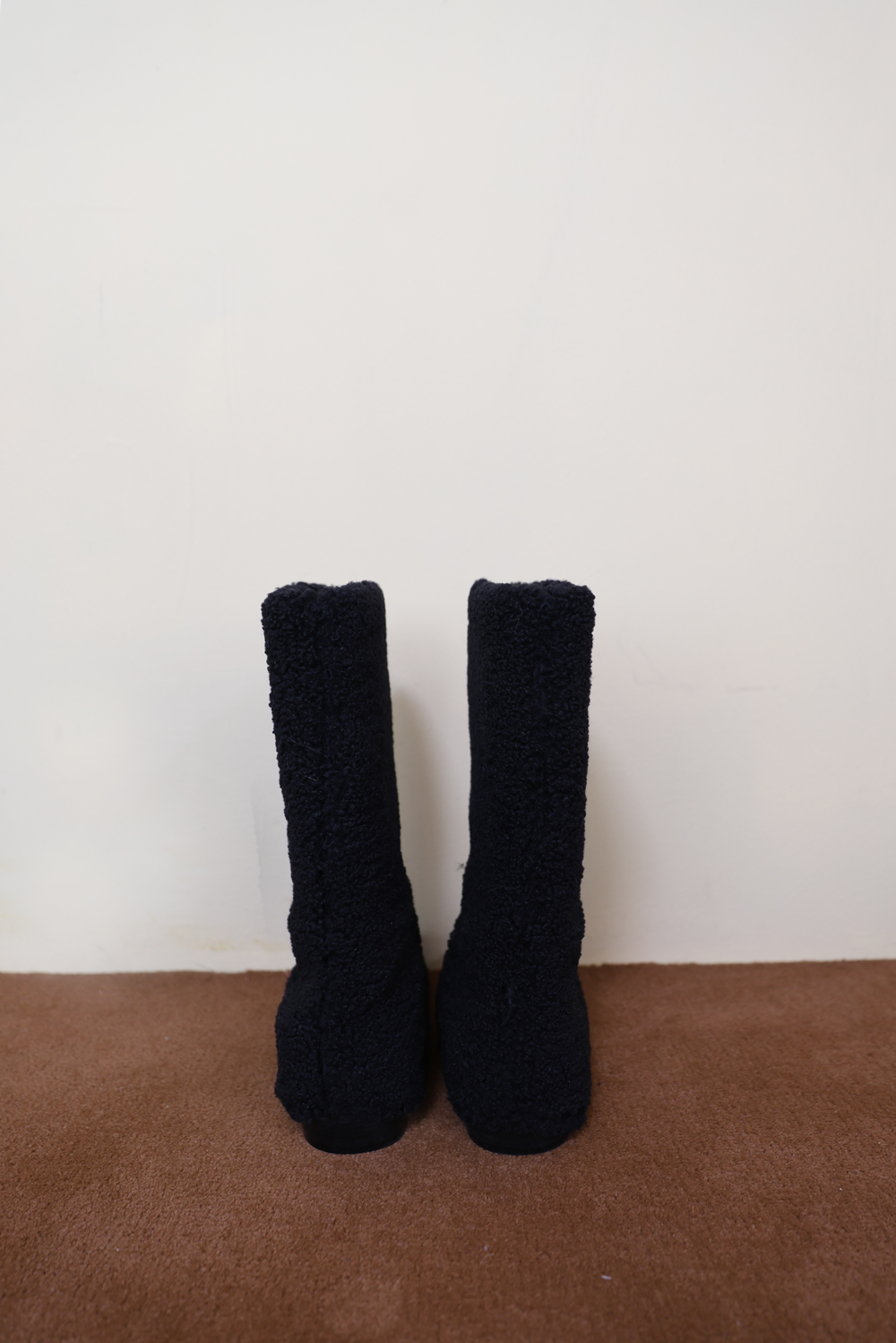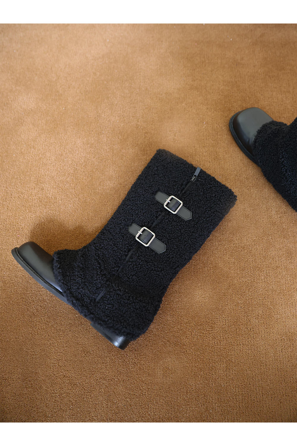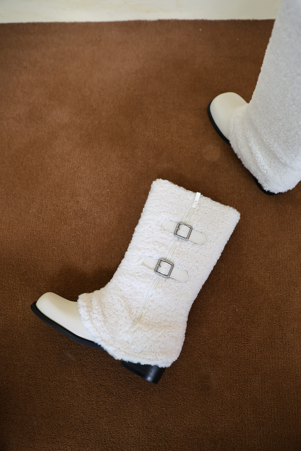 - 레더 부츠에 퍼 원단이 레이어드 된 디자인
