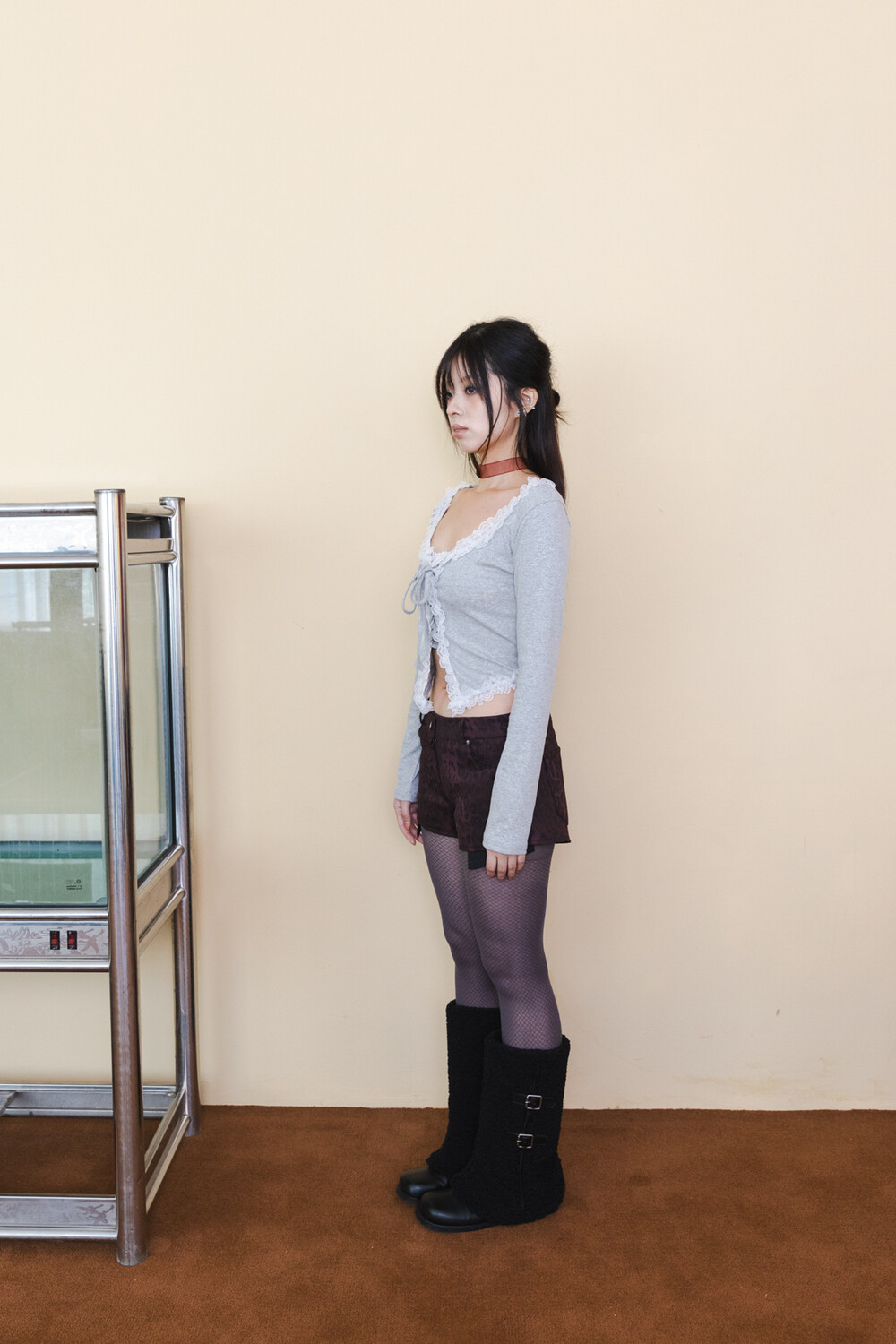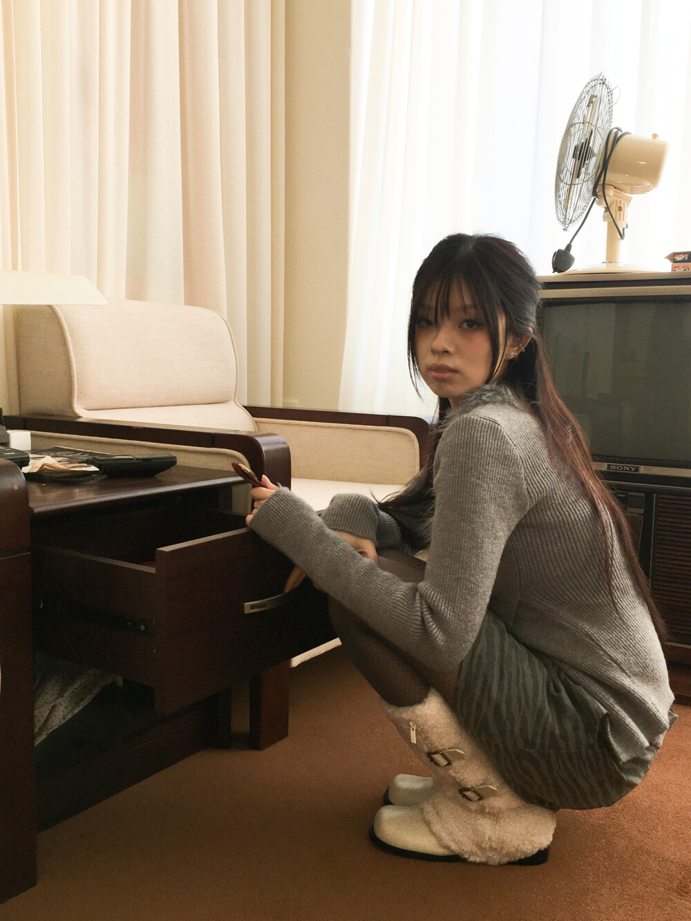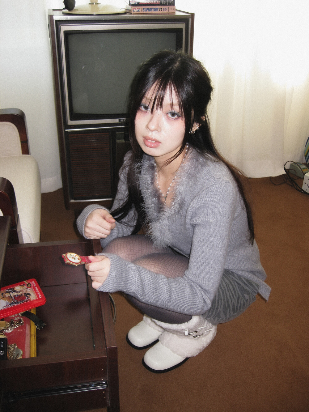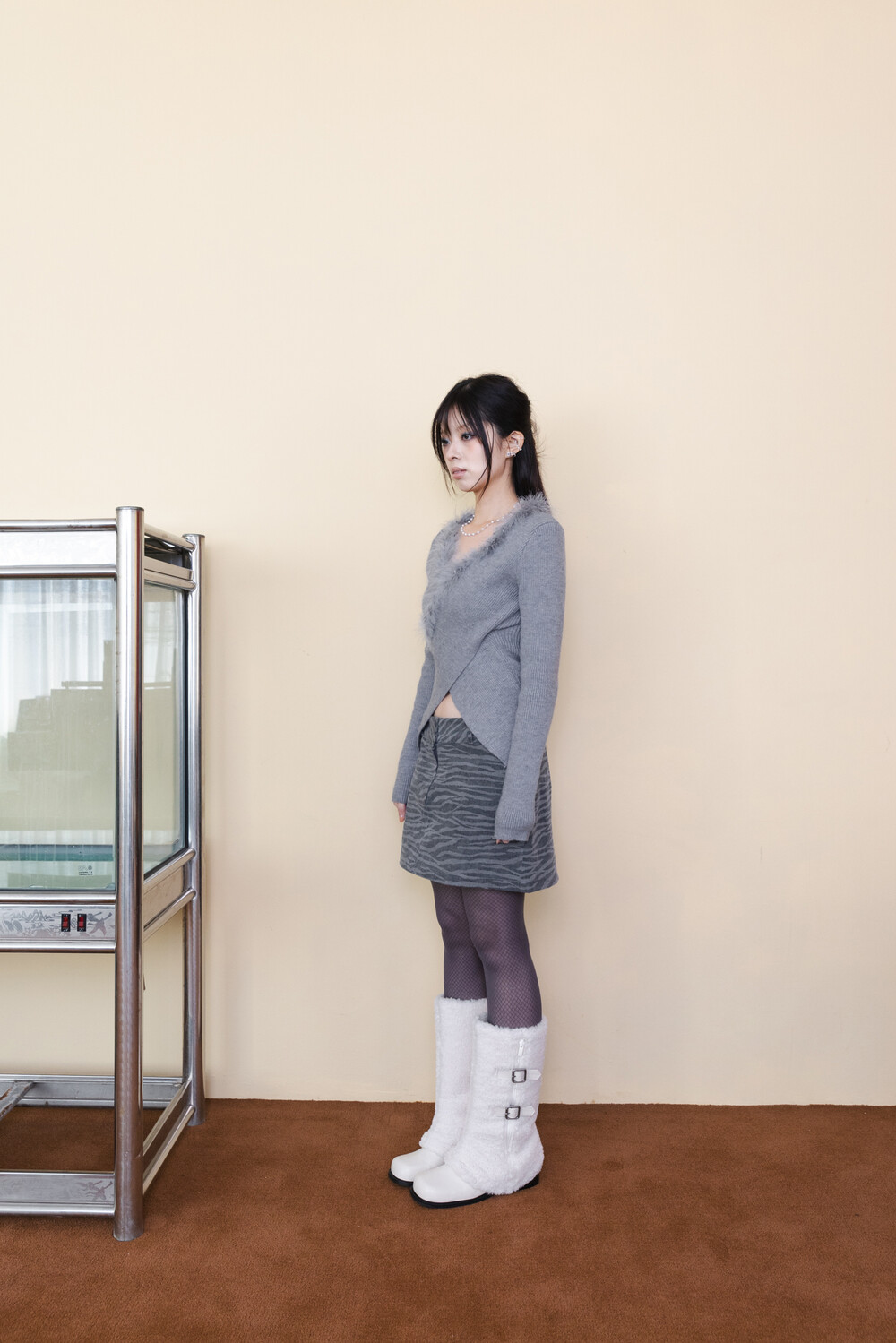 - 레더 부츠에 퍼 원단이 레이어드 된 디자인