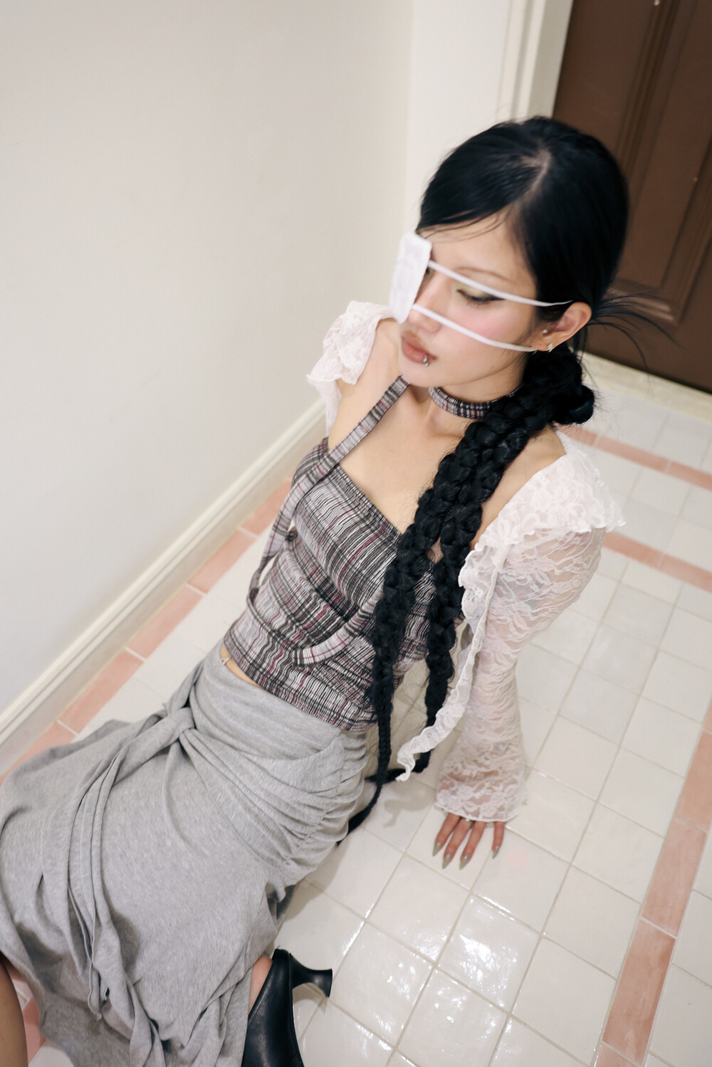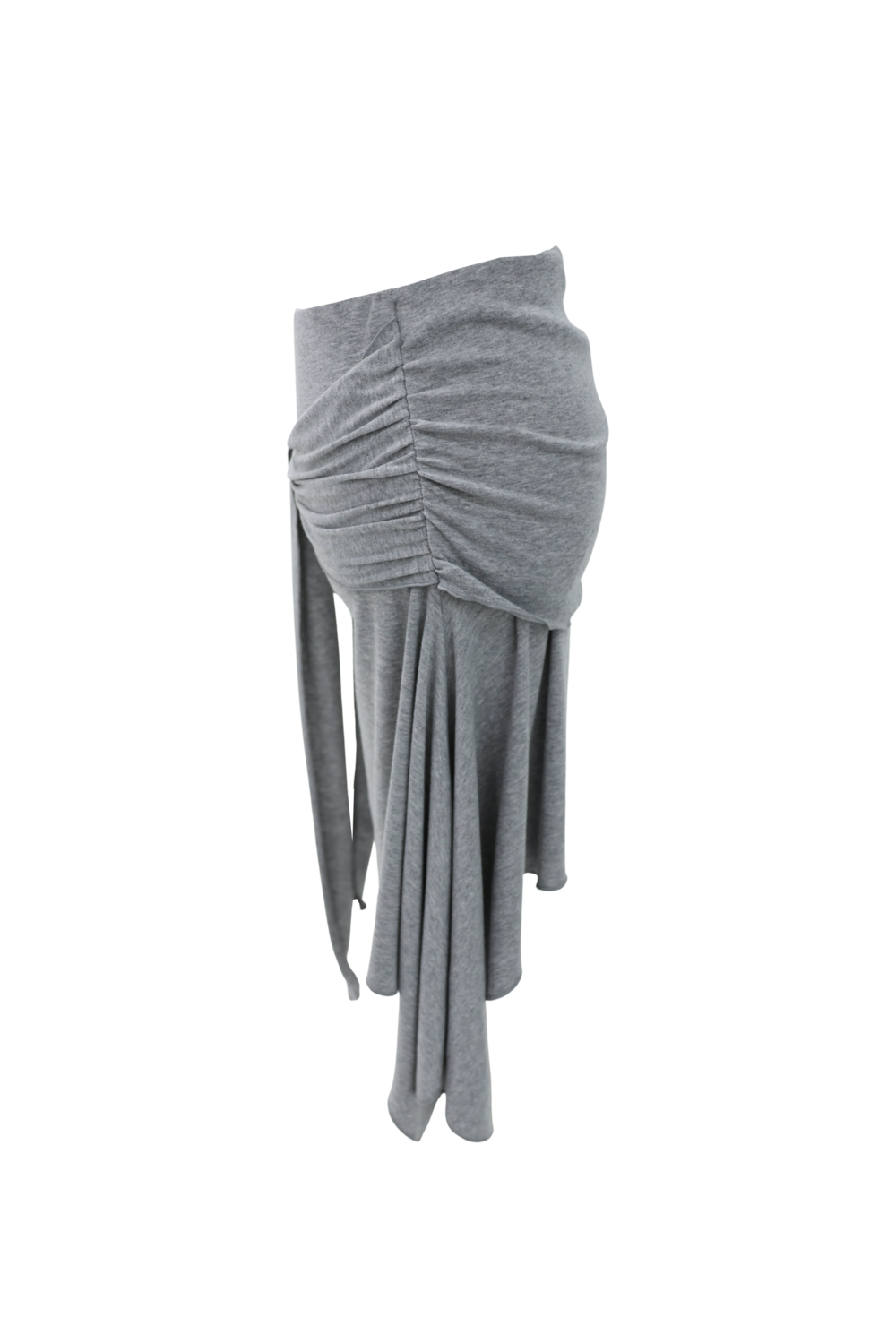 [Pink orchid house] Shirring unbal wrap skirt (2color) (Gray)