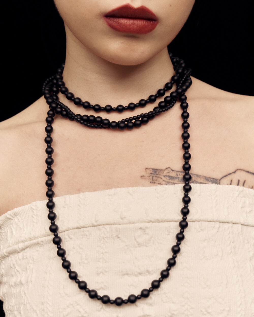 은은한 무광 블랙 컬러 원석으로 제작한 3way 디자인의 흑석 레이어드 목걸이 입니다.