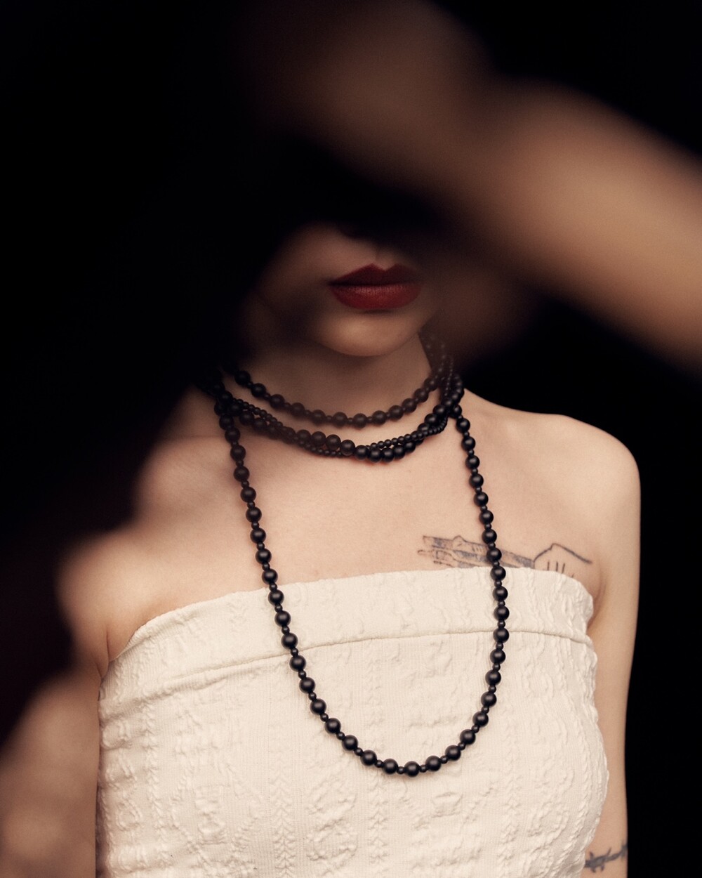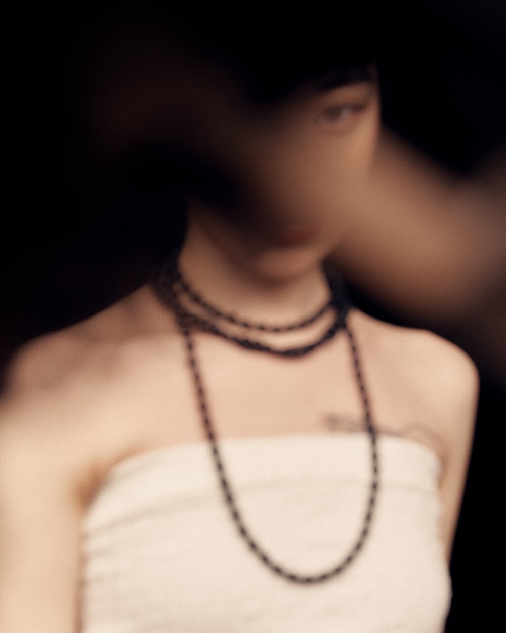 흑석 necklace 와 레이어드 하시면 더욱 깊은 분위기를 자아냅니다.