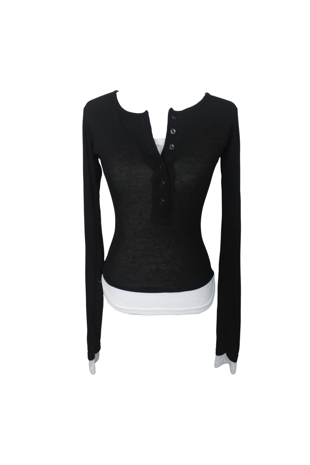 [Pink orchid house] Button layered T (3color) (Pink)