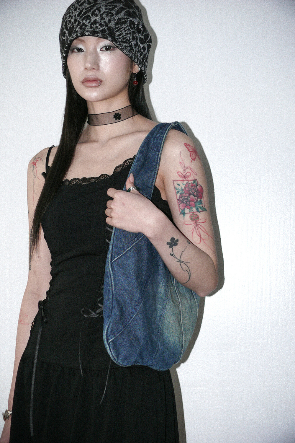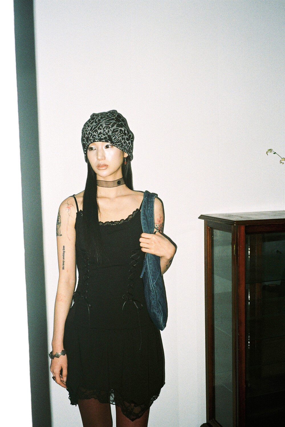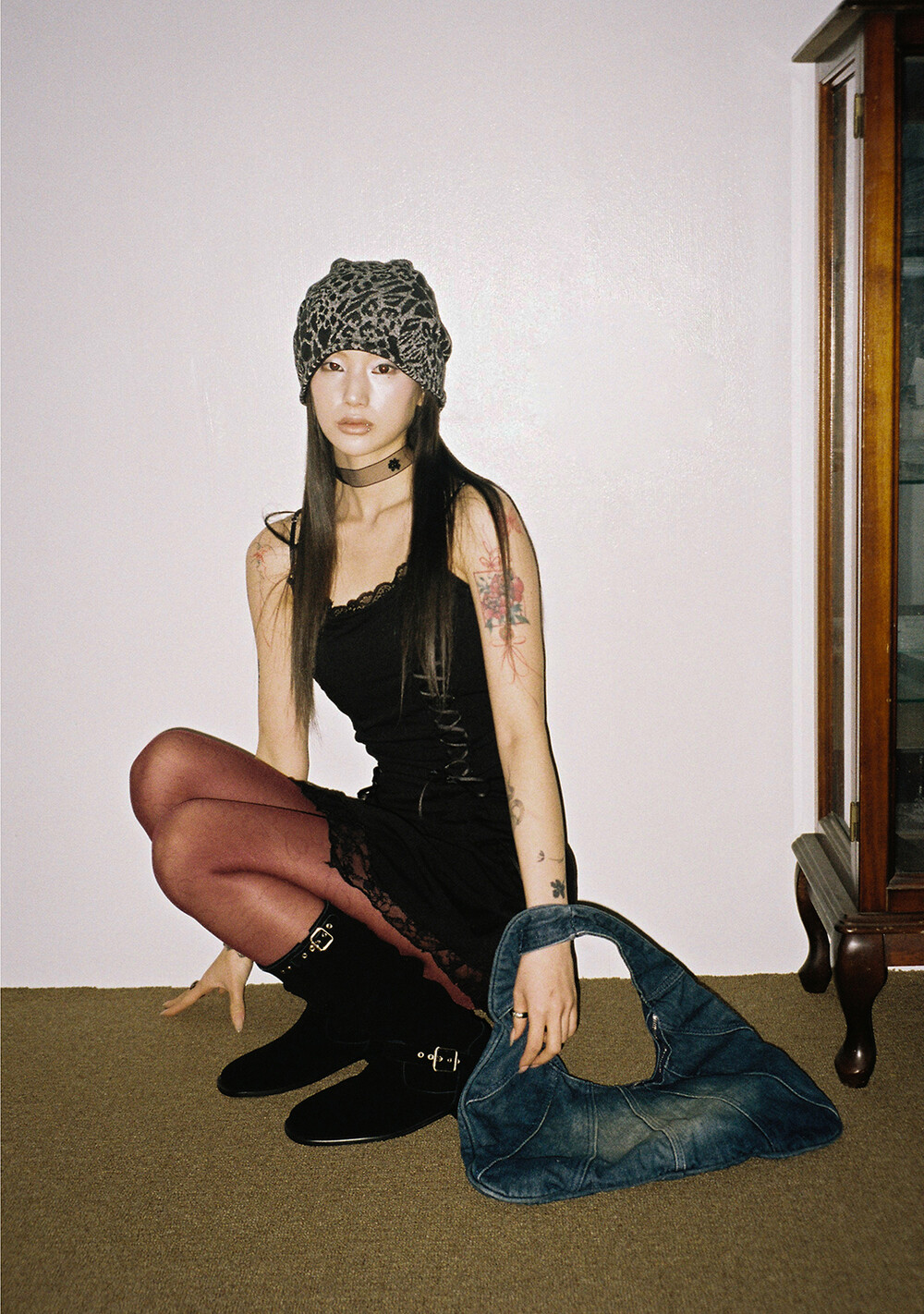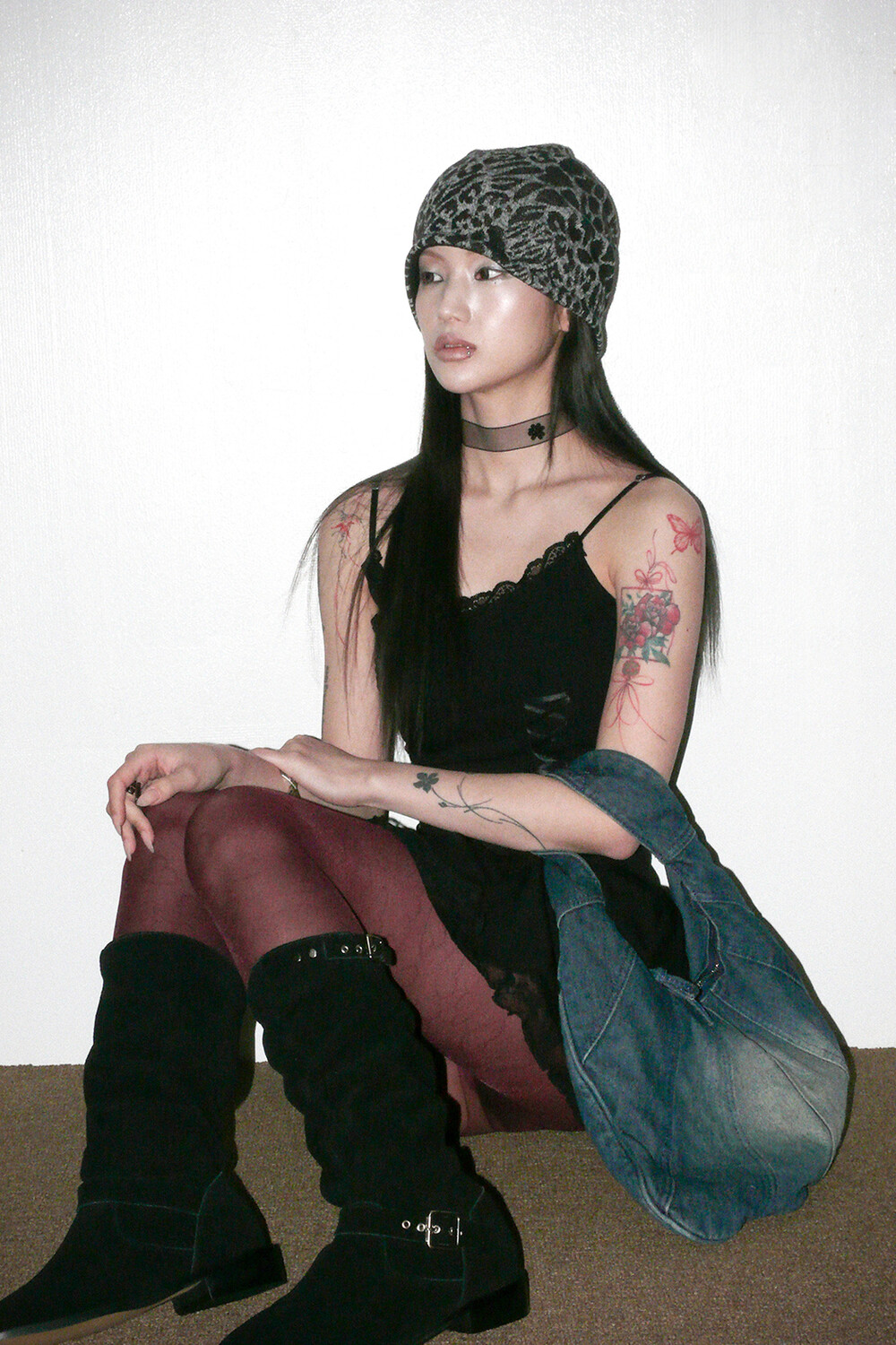 하루[春] - Leopard beanie (Black/Brown)
