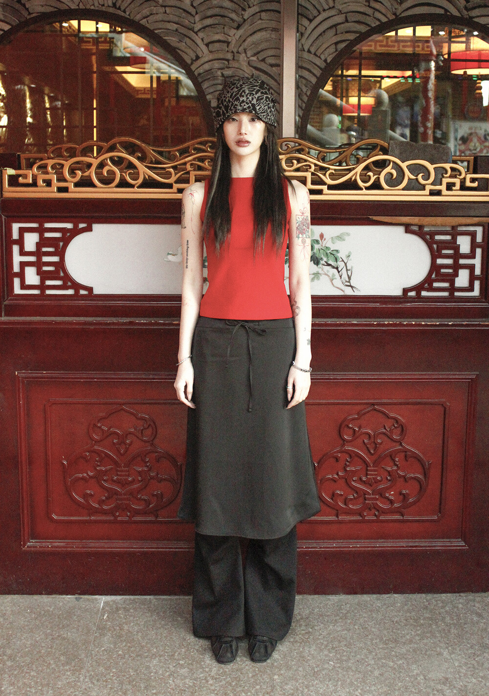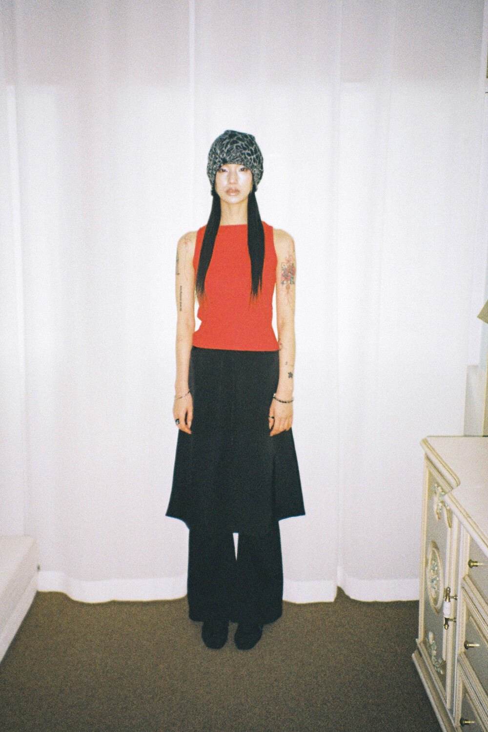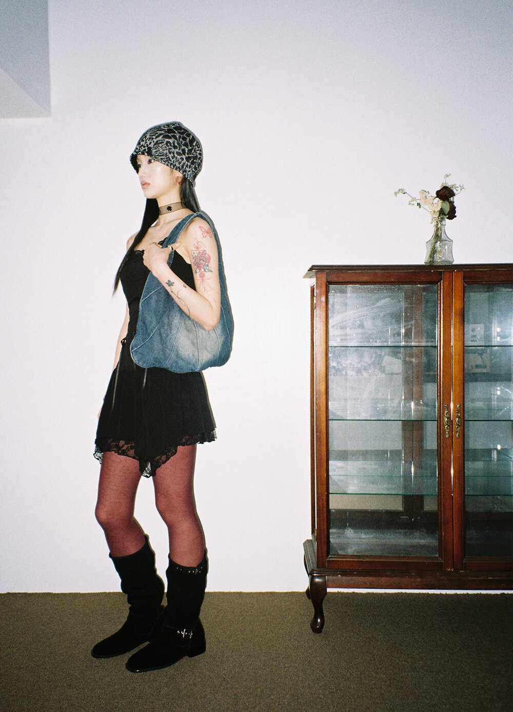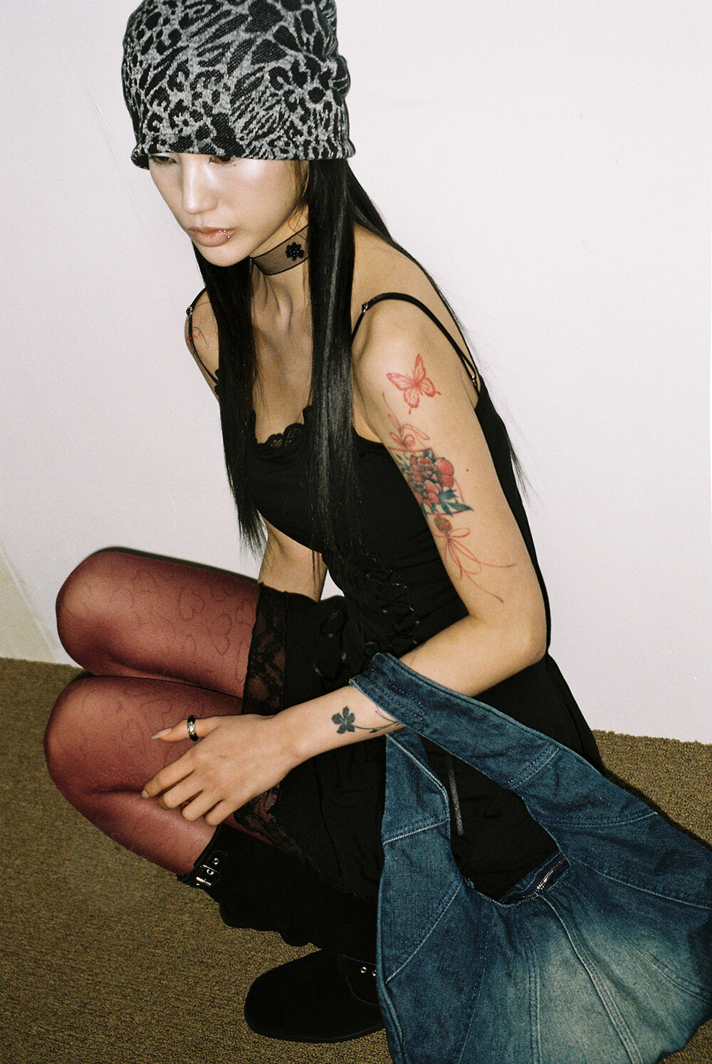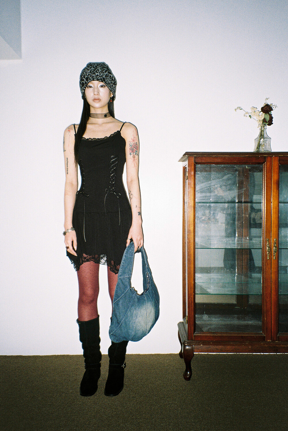 하루[春] - Leopard beanie (Black/Brown)