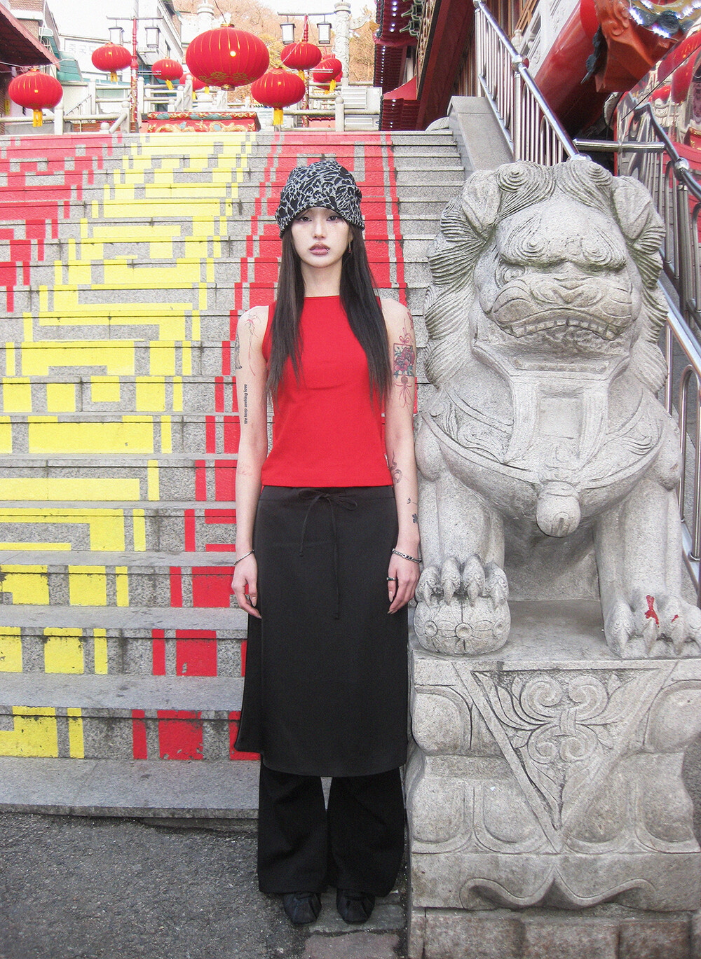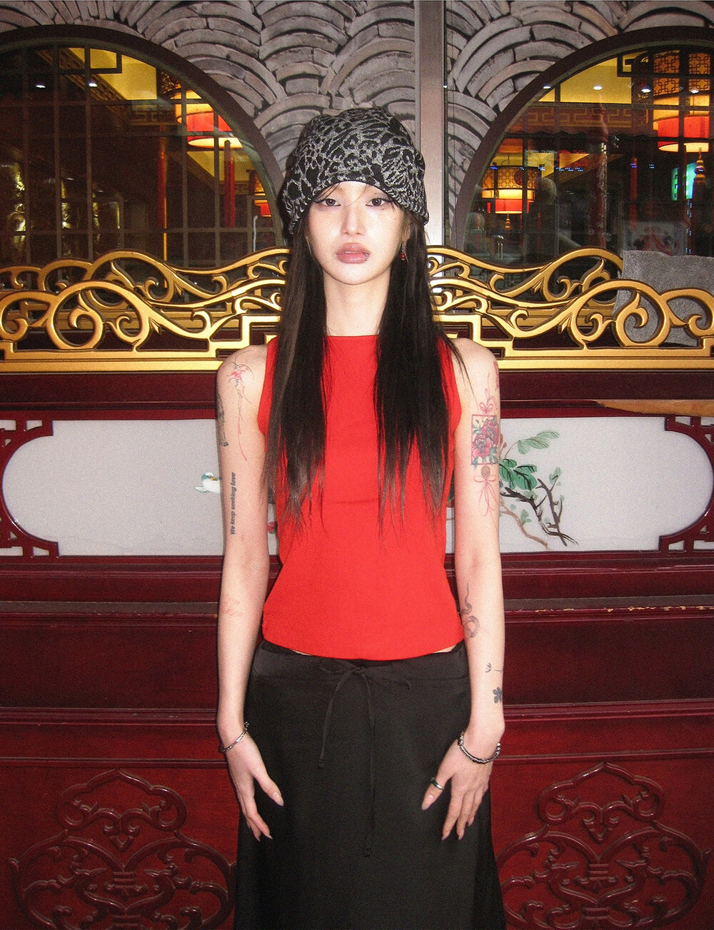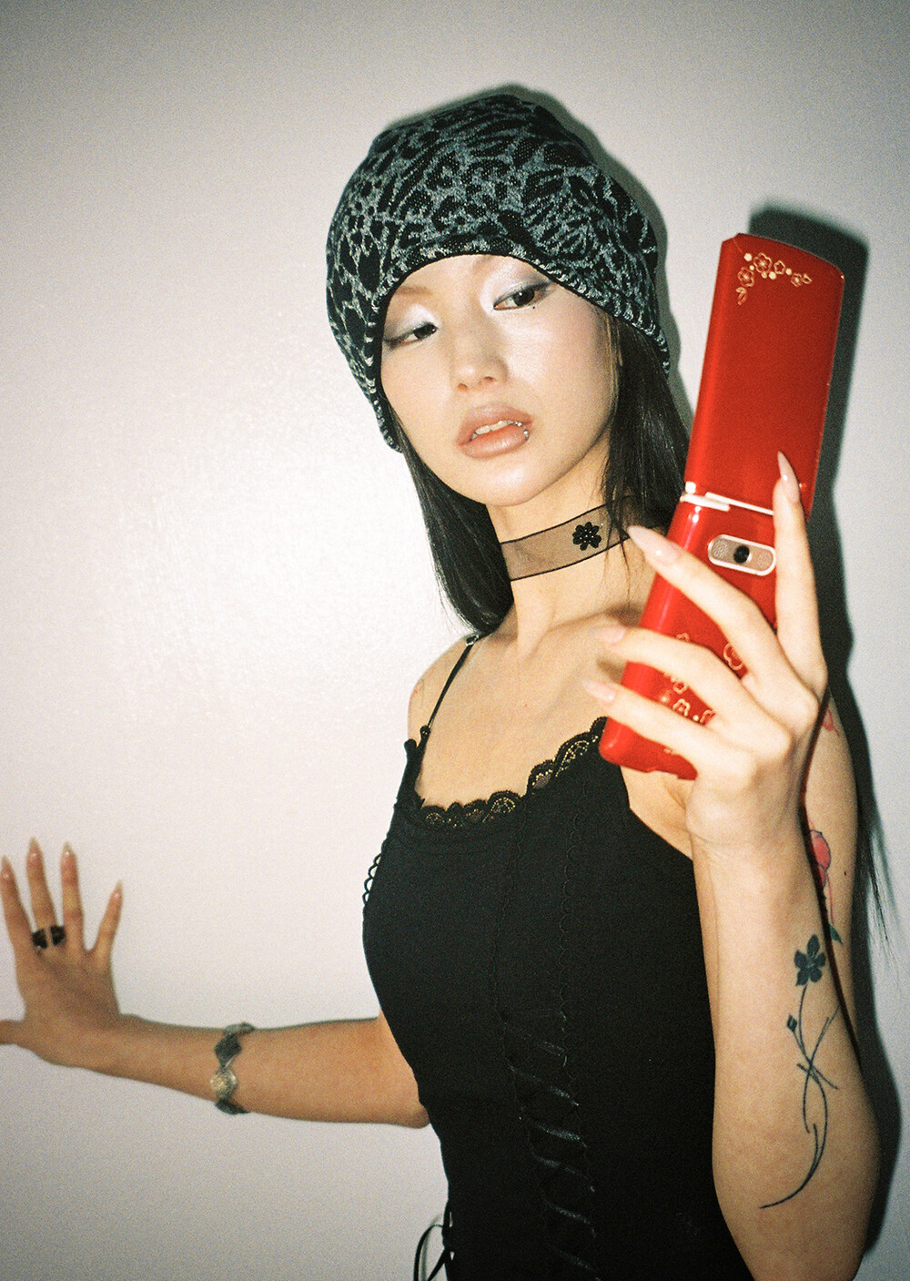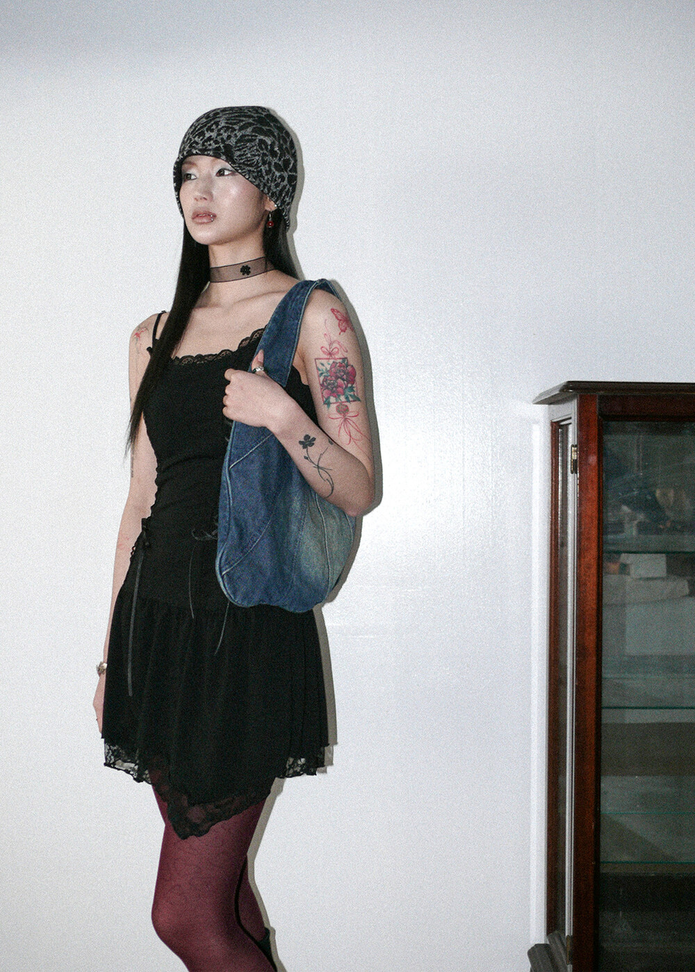 하루[春] - Leopard beanie (Black/Brown)