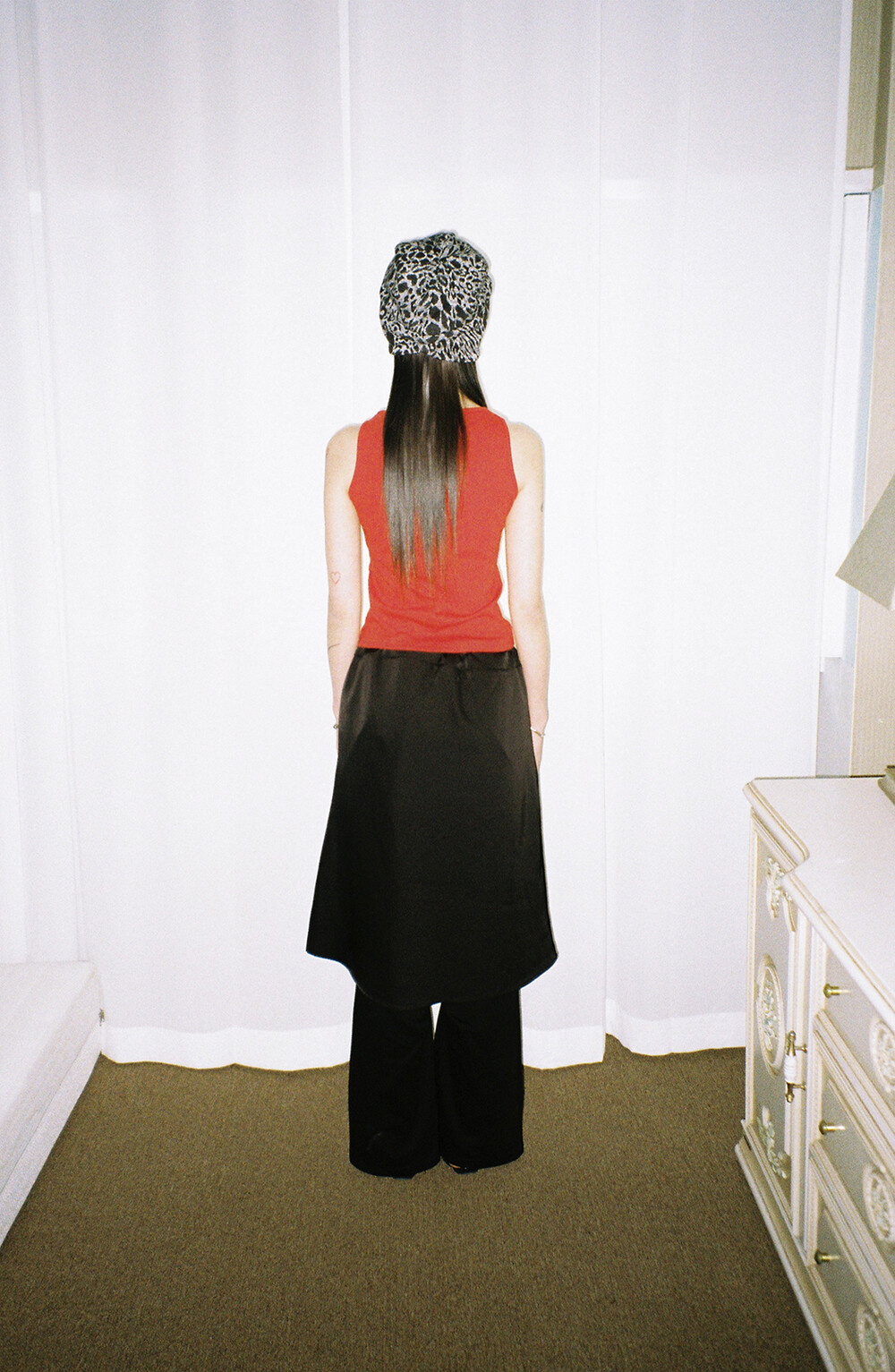 뒤쪽에 셔링 디테일이 있으며,