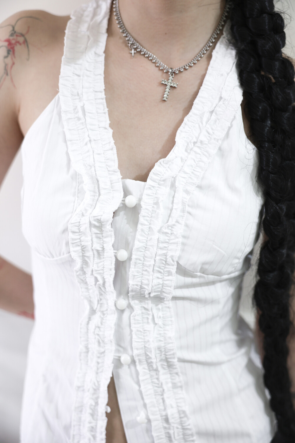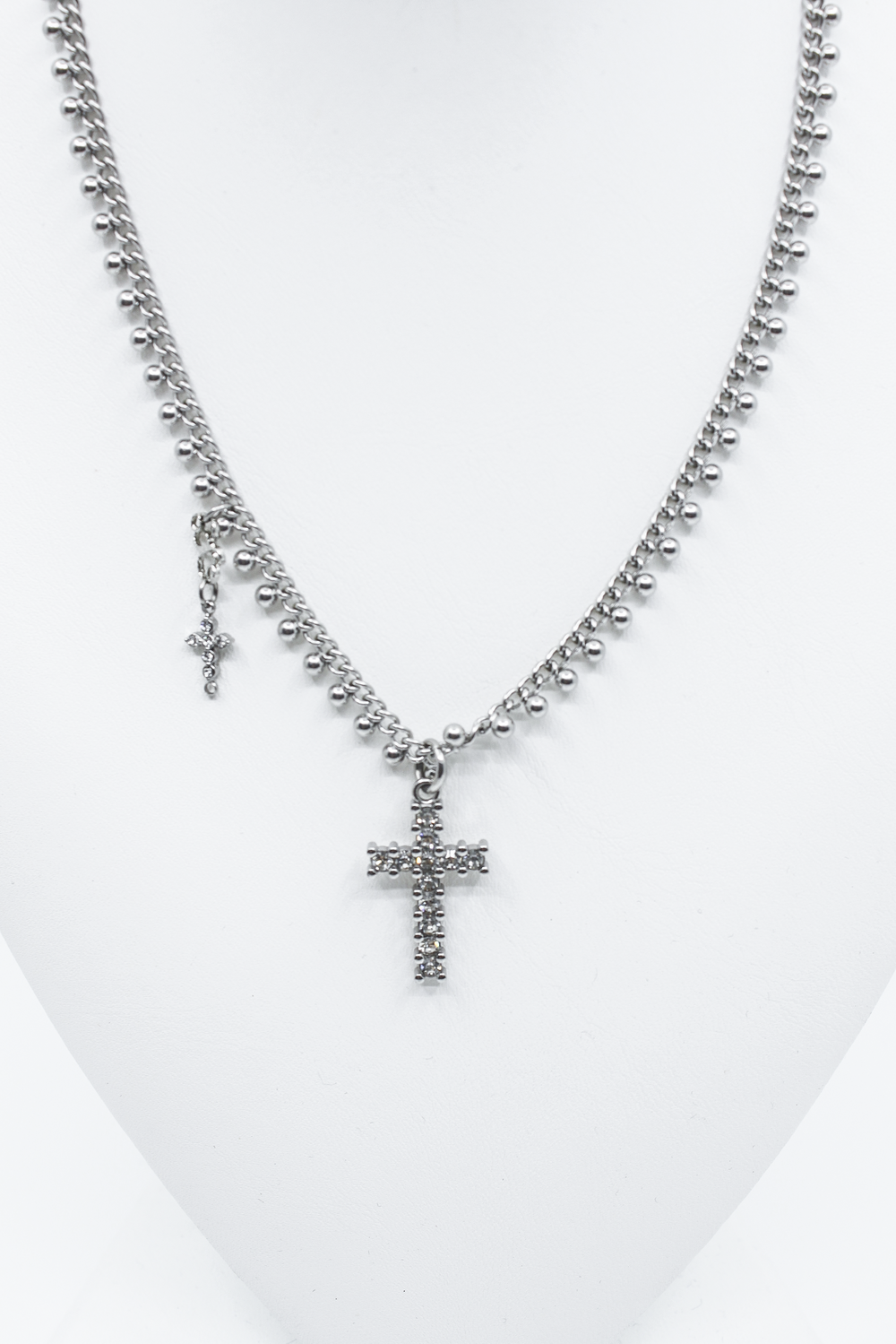 큰 십자가 펜던트와 작은 십자가 펜던트로 포인트를 준 목걸이입니다.