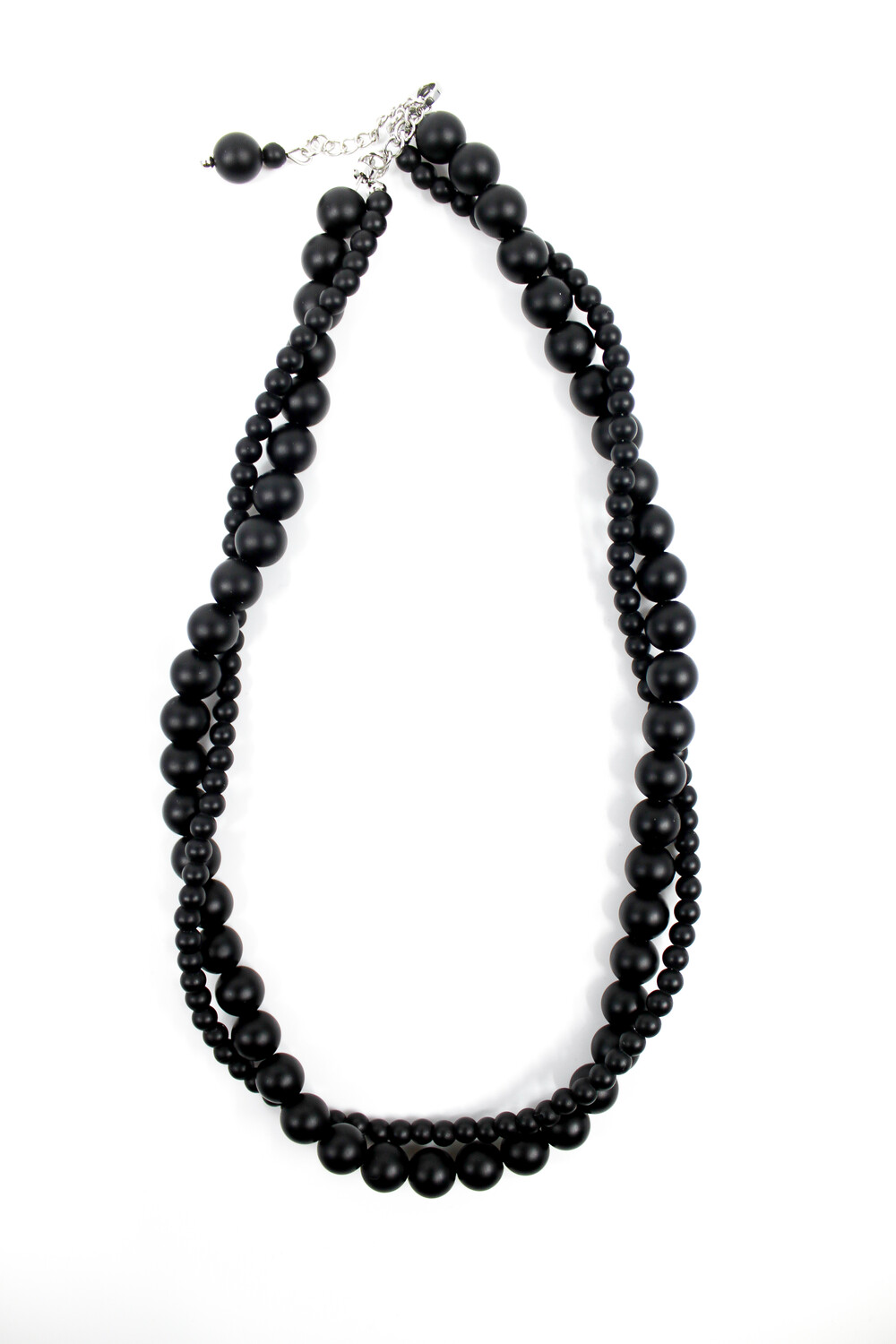 크기가 다른 두 종류의 무광 흑석 비즈를 꼬아서 제작한 목걸이 입니다.