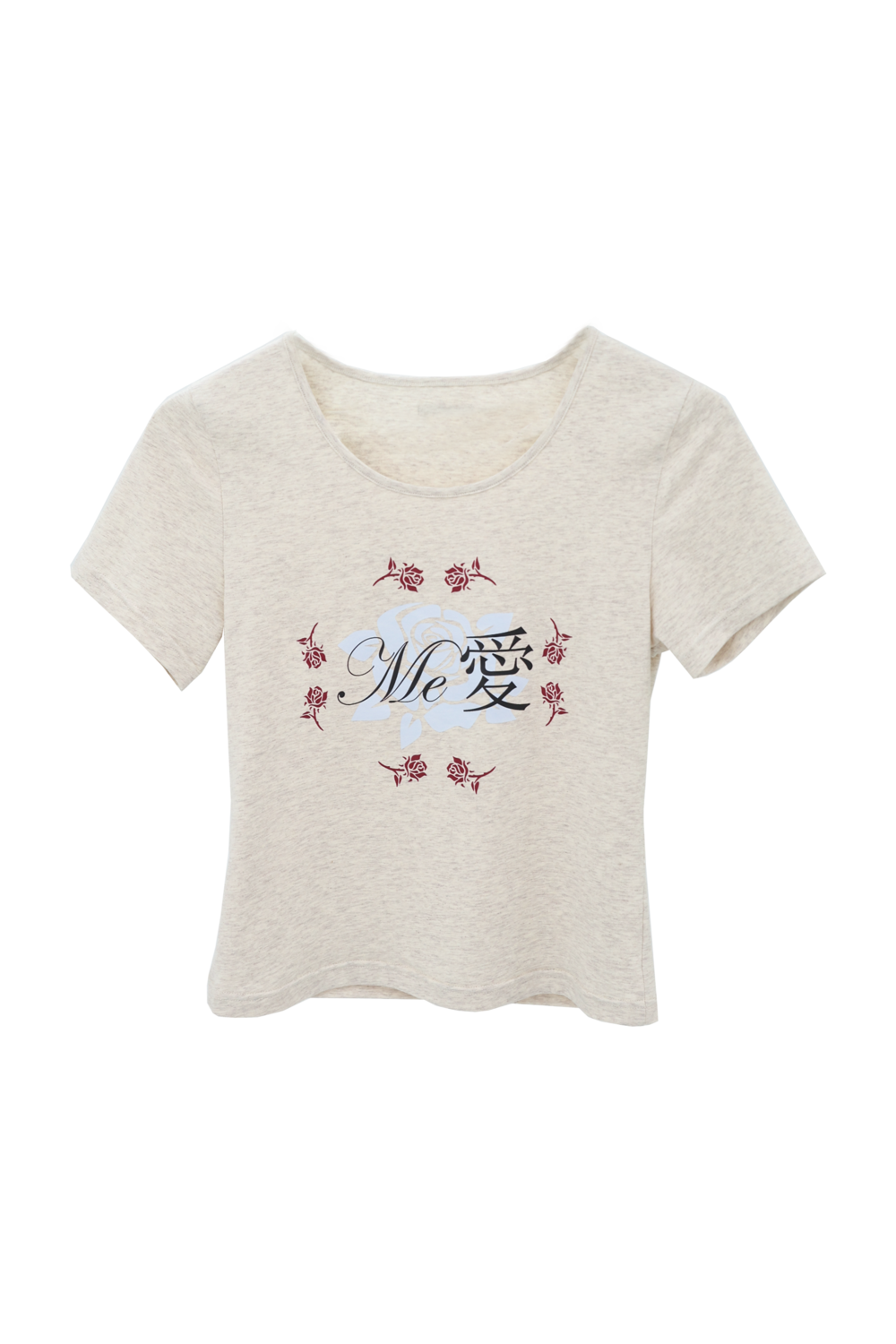 이 티셔츠는 미애의 슬로건을 기반으로 ‘나를 사랑하자’라는 메시지를 전합니다.