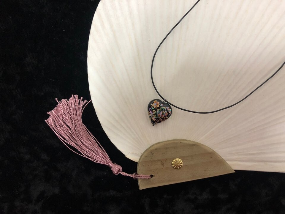 비단 목걸이의 두번째 디자인이라고 볼 수 있는 사랑방 목걸이는 하트 모양으로 사랑스러우면서도