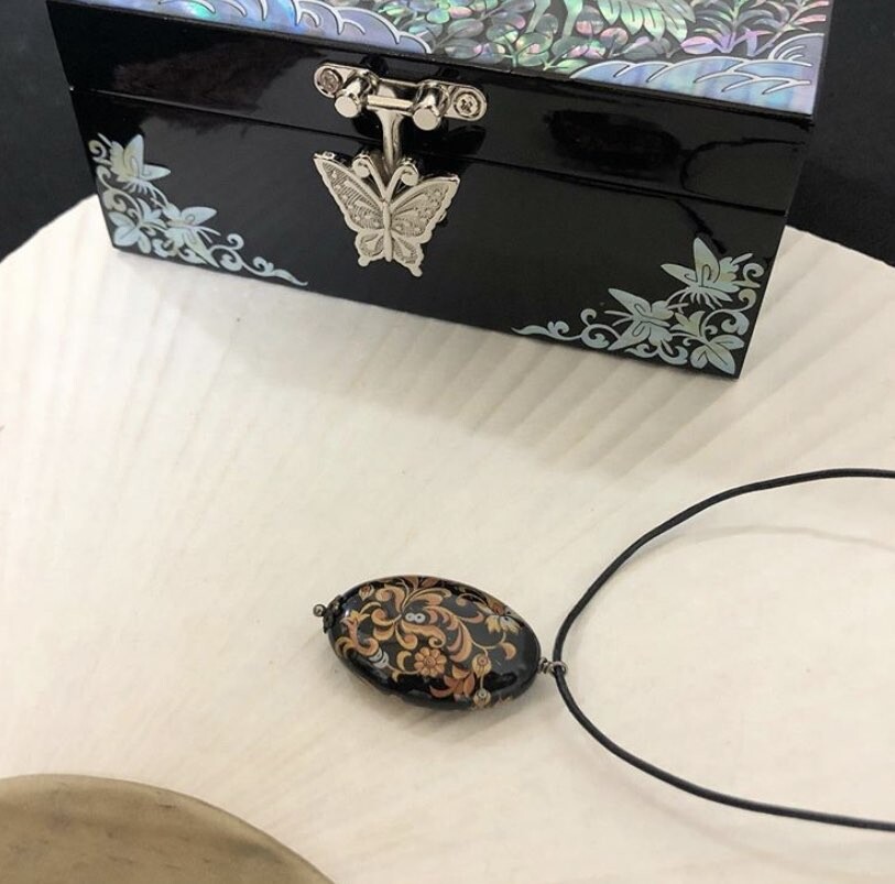 오리엔탈 문양이 시선을 사로 잡는 美愛 비단 목걸이 입니다.