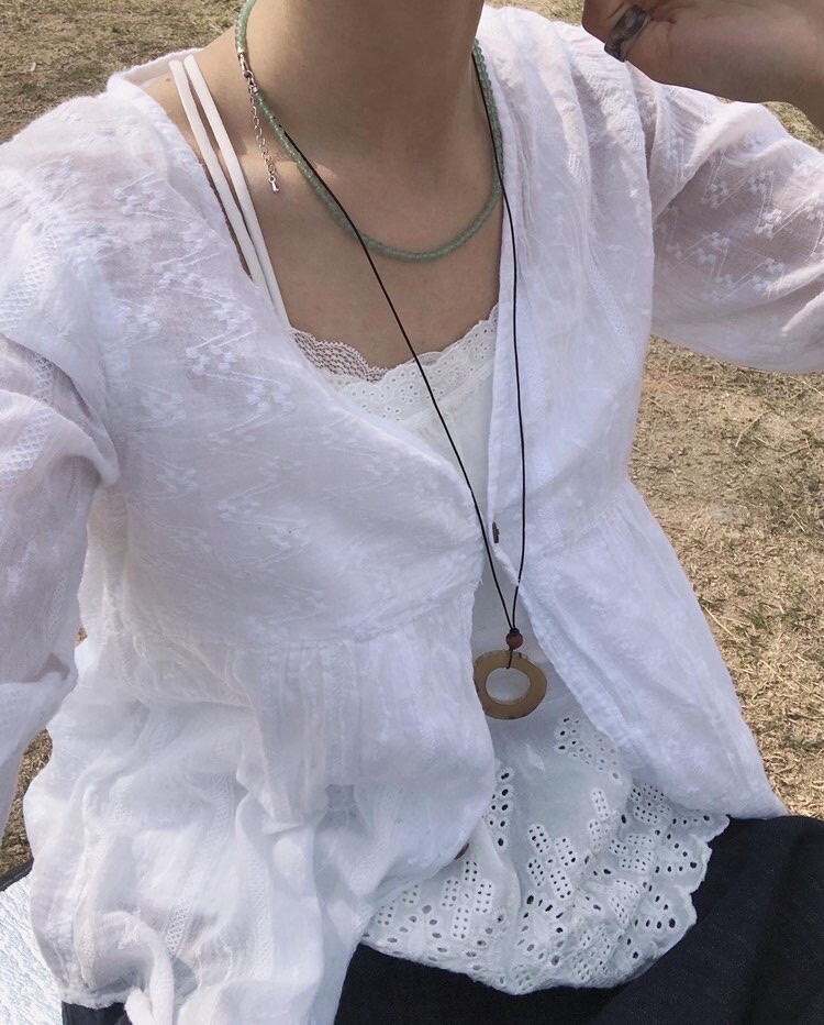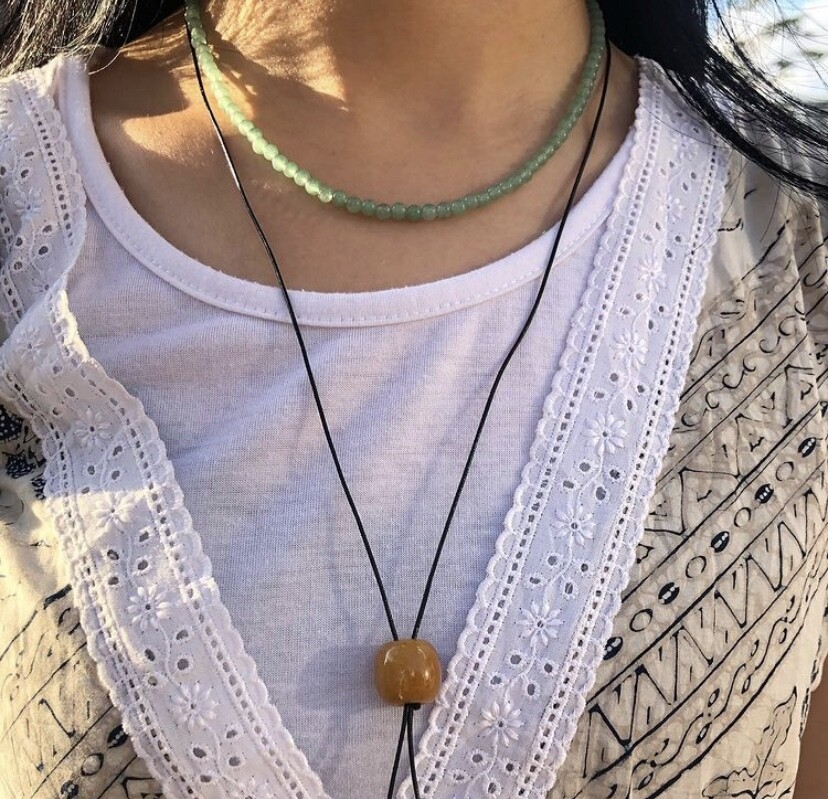 은은한 옥빛이 아름답게 빛나는 MIAE mood necklace green 입니다.