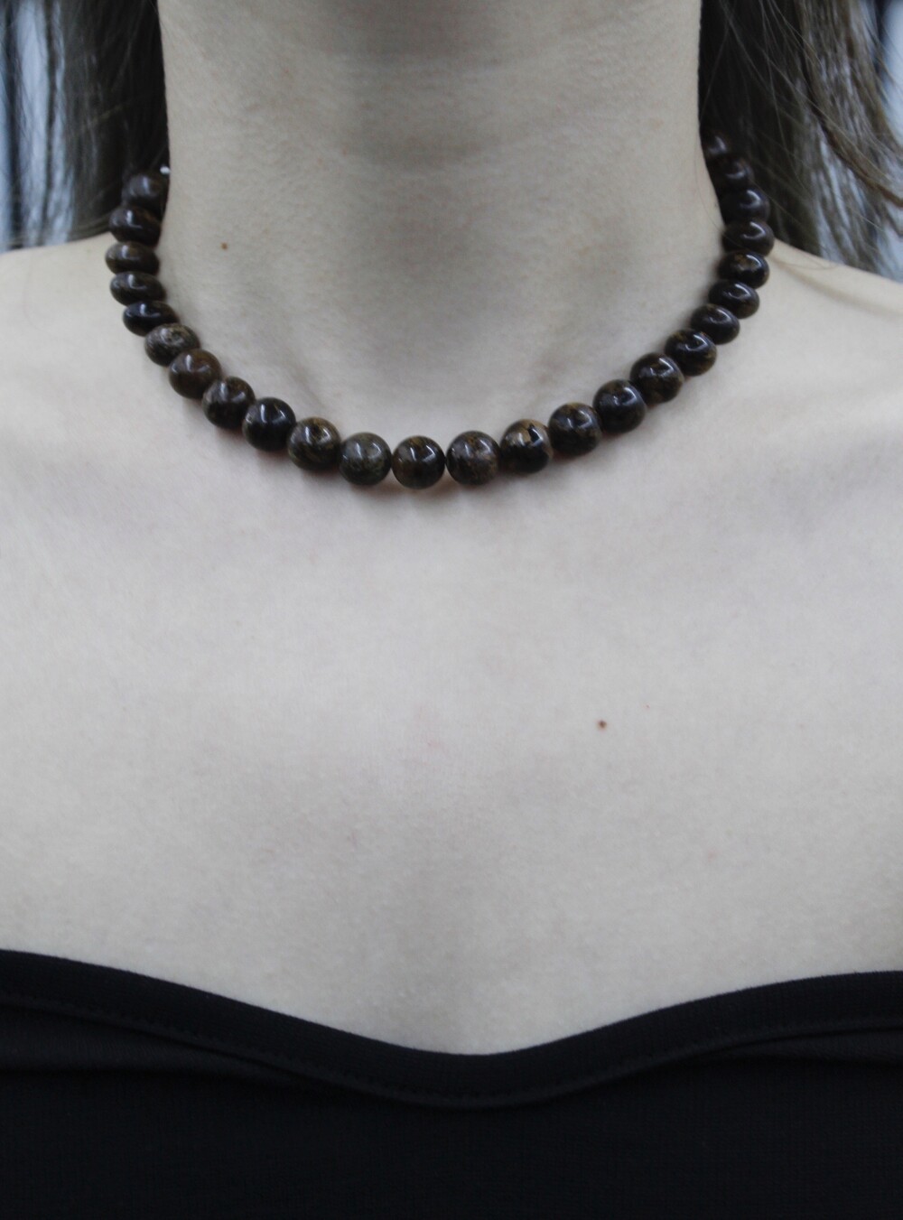 브라운 버전은 굵은 초커 스타일로 유니크하면서도, 동양적인 분위기가 나도록