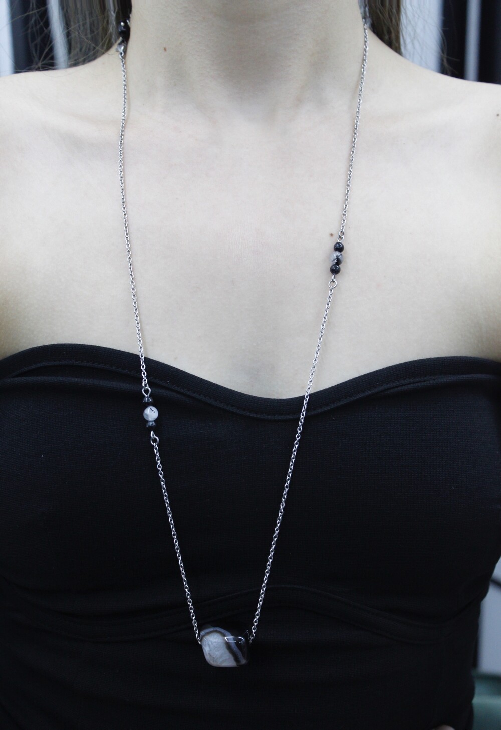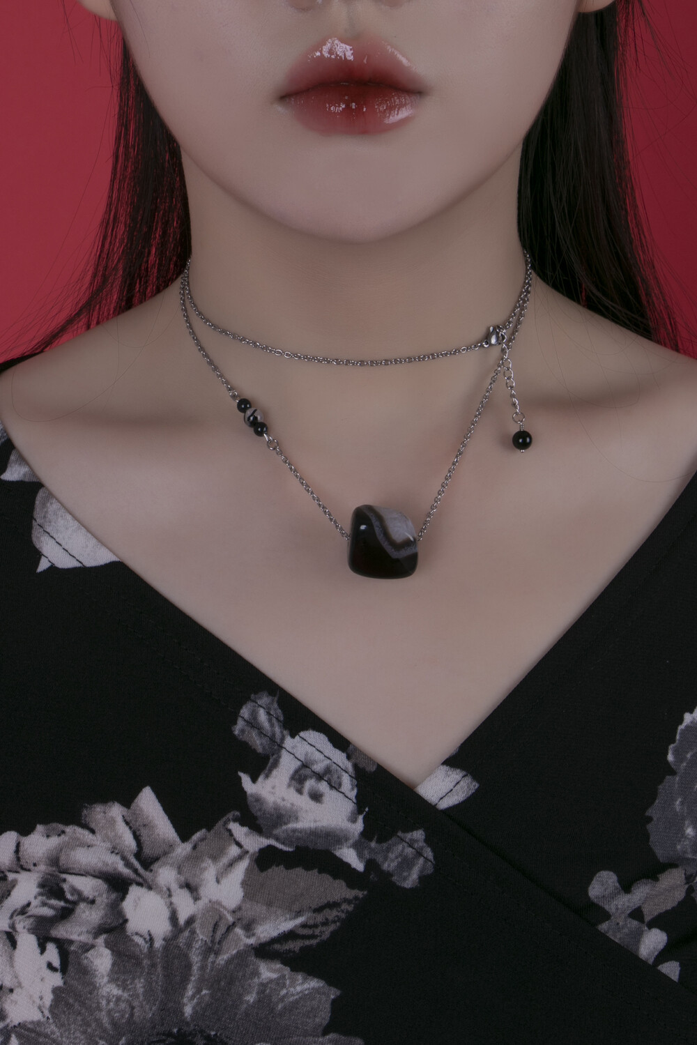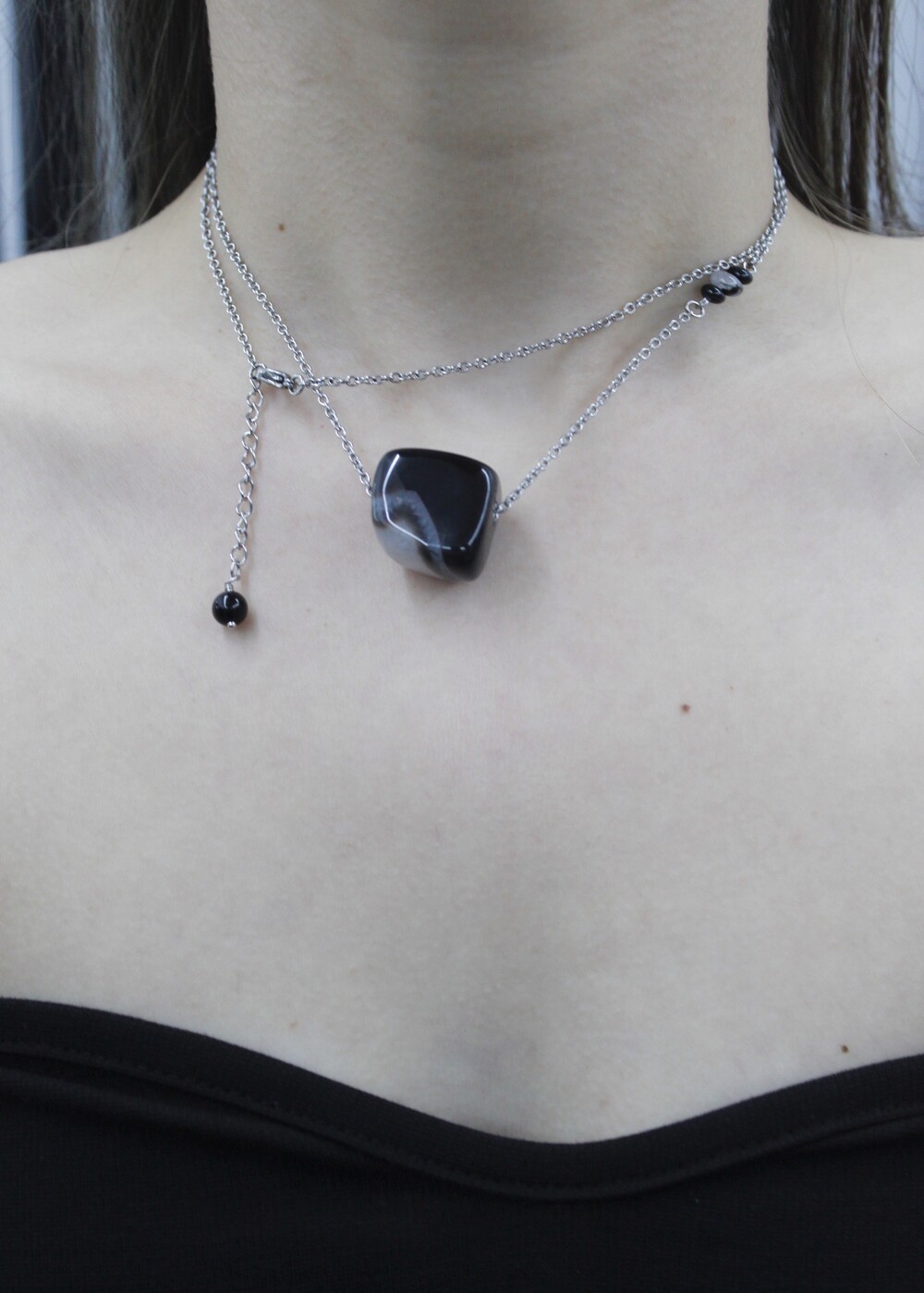 네모난 아게이트 원석이 포인트가 되어, 투웨이로 착용 가능한 stone chain necklace입니다.