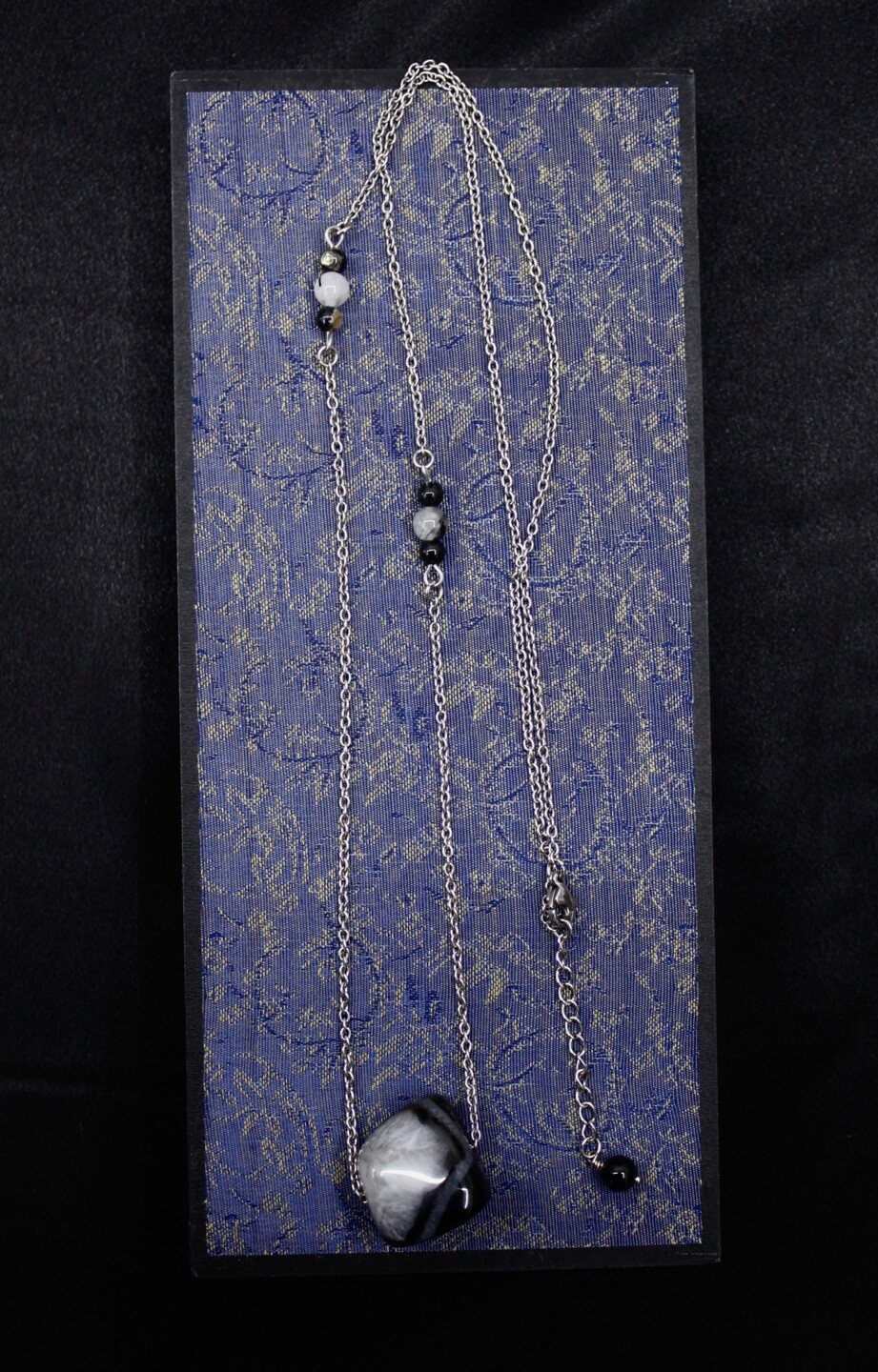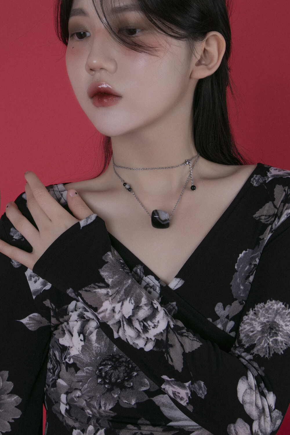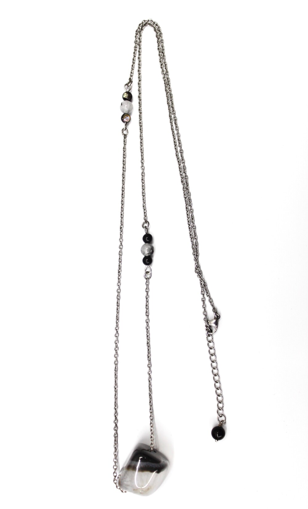 네모난 아게이트 원석이 포인트가 되어, 투웨이로 착용 가능한 stone chain necklace입니다.