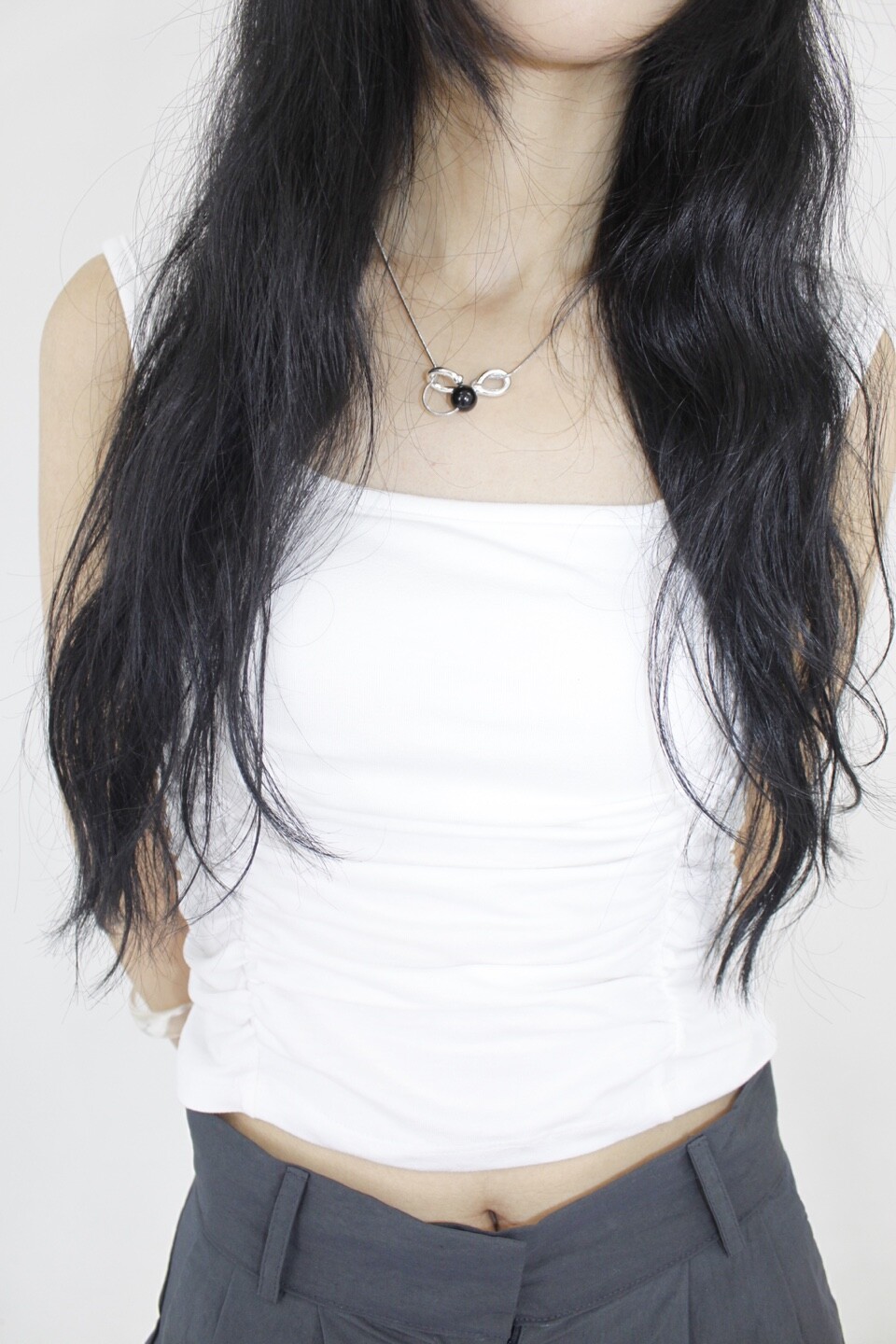 다양한 쉐입을 연출 할 수 있는 multi-way necklace 입니다.