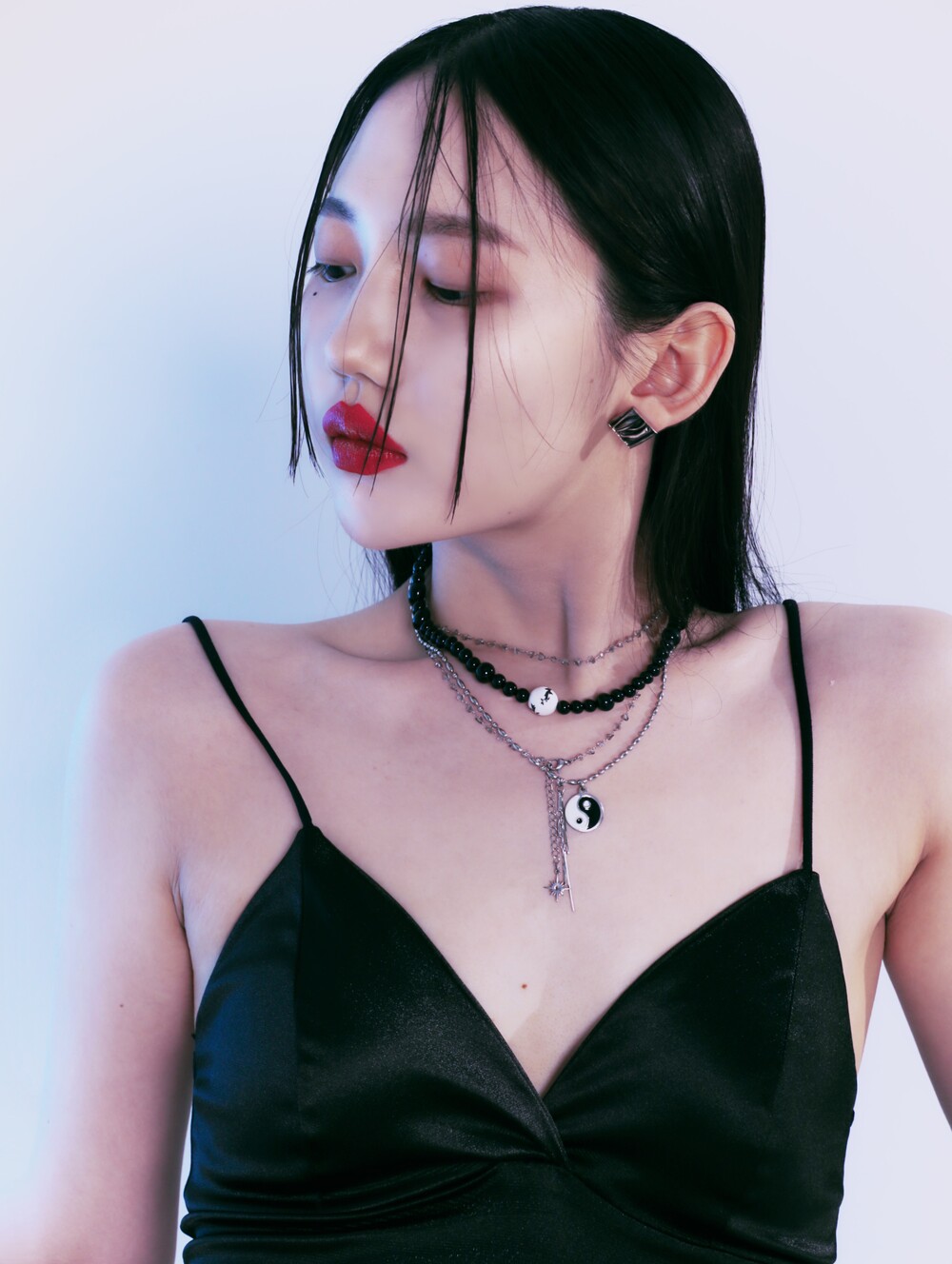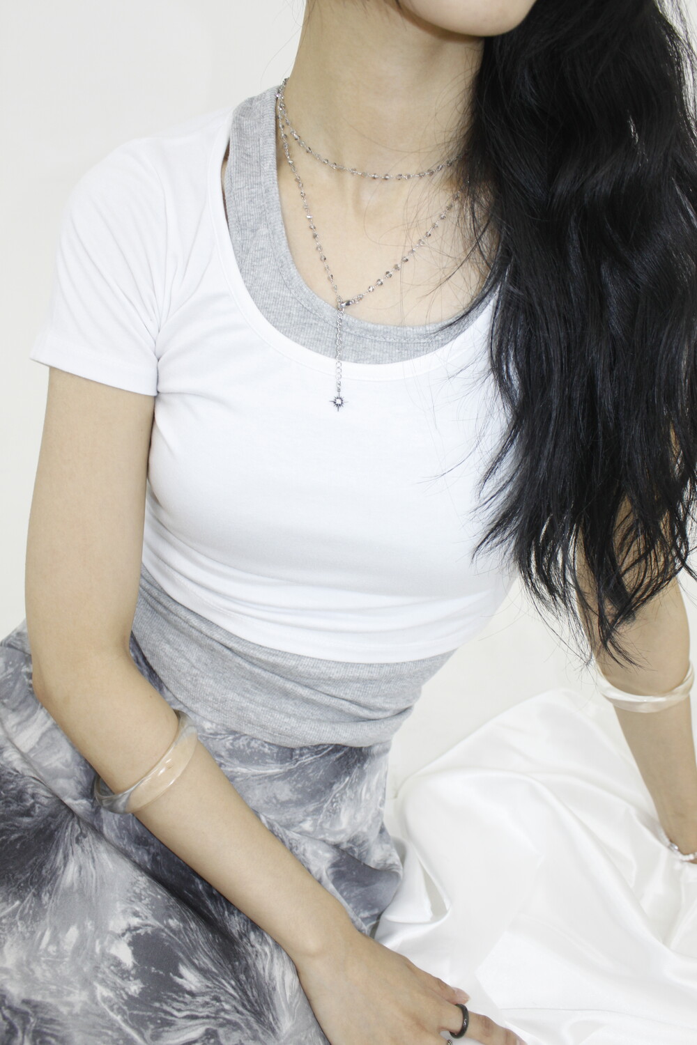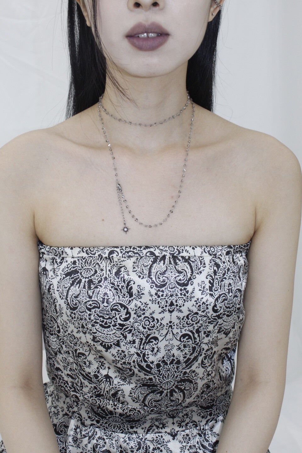 목에 두번 감아 짧게도 착용할 수 있게 제작한 목걸이 입니다.