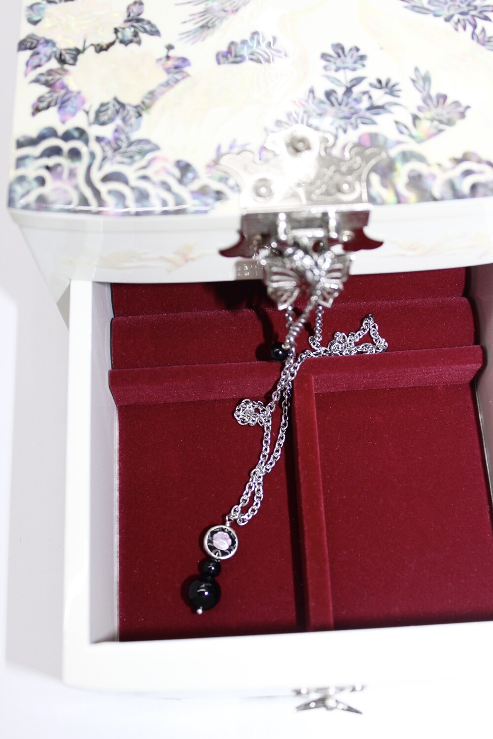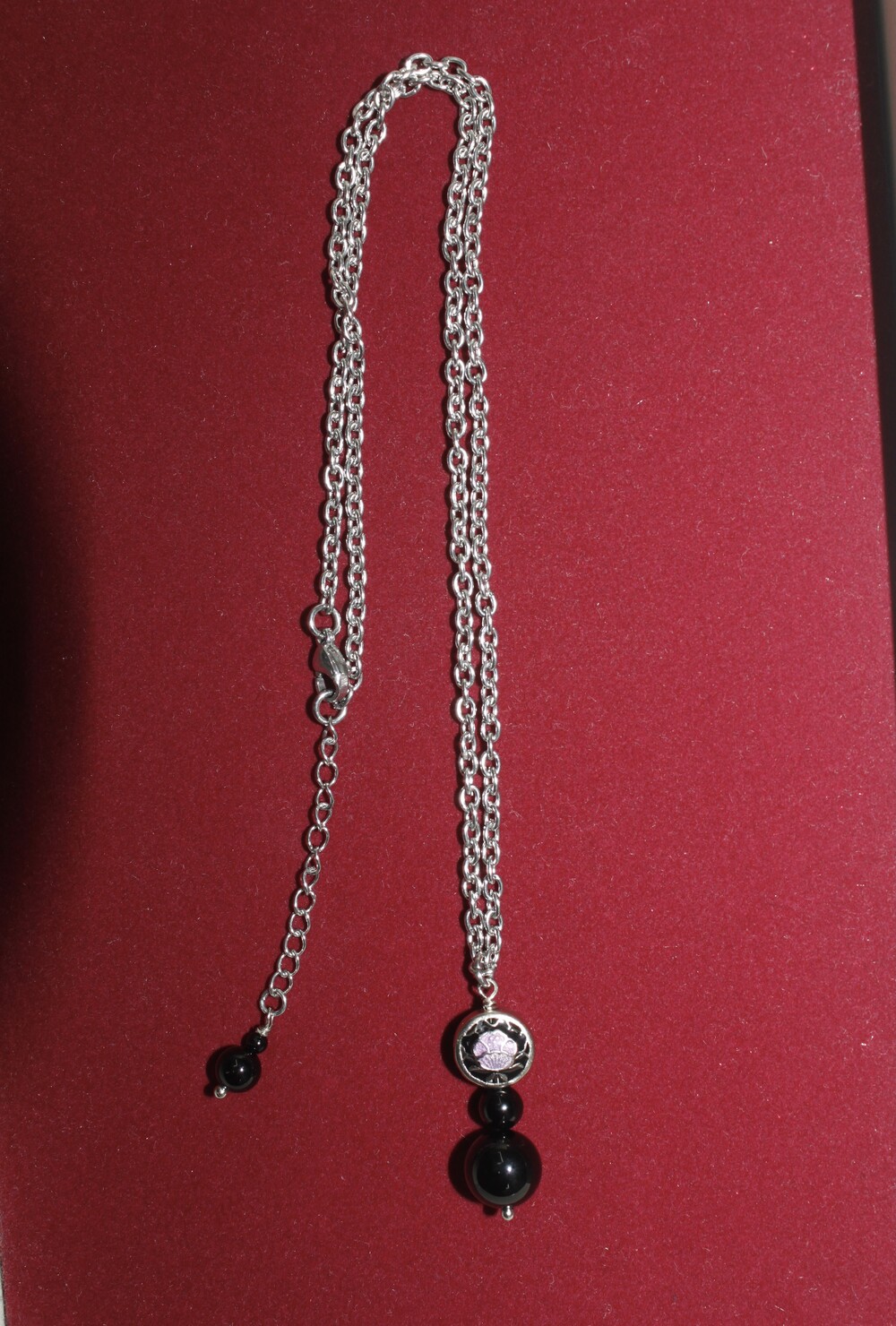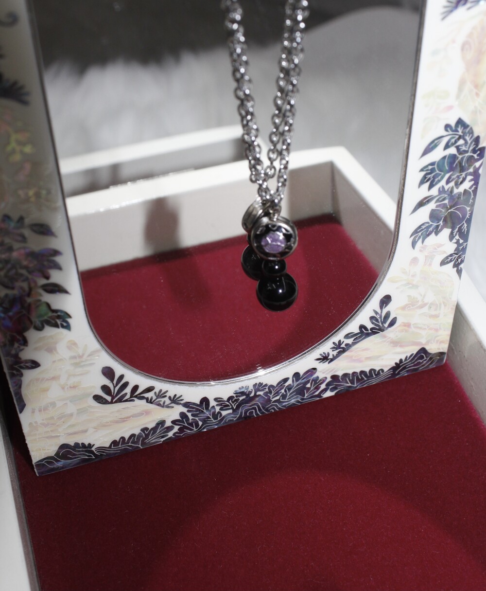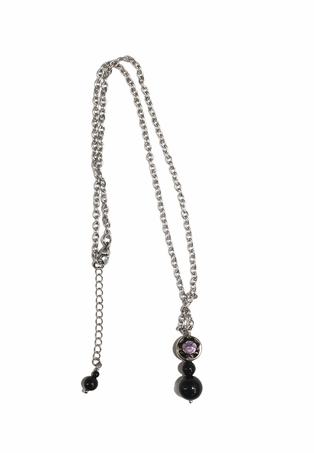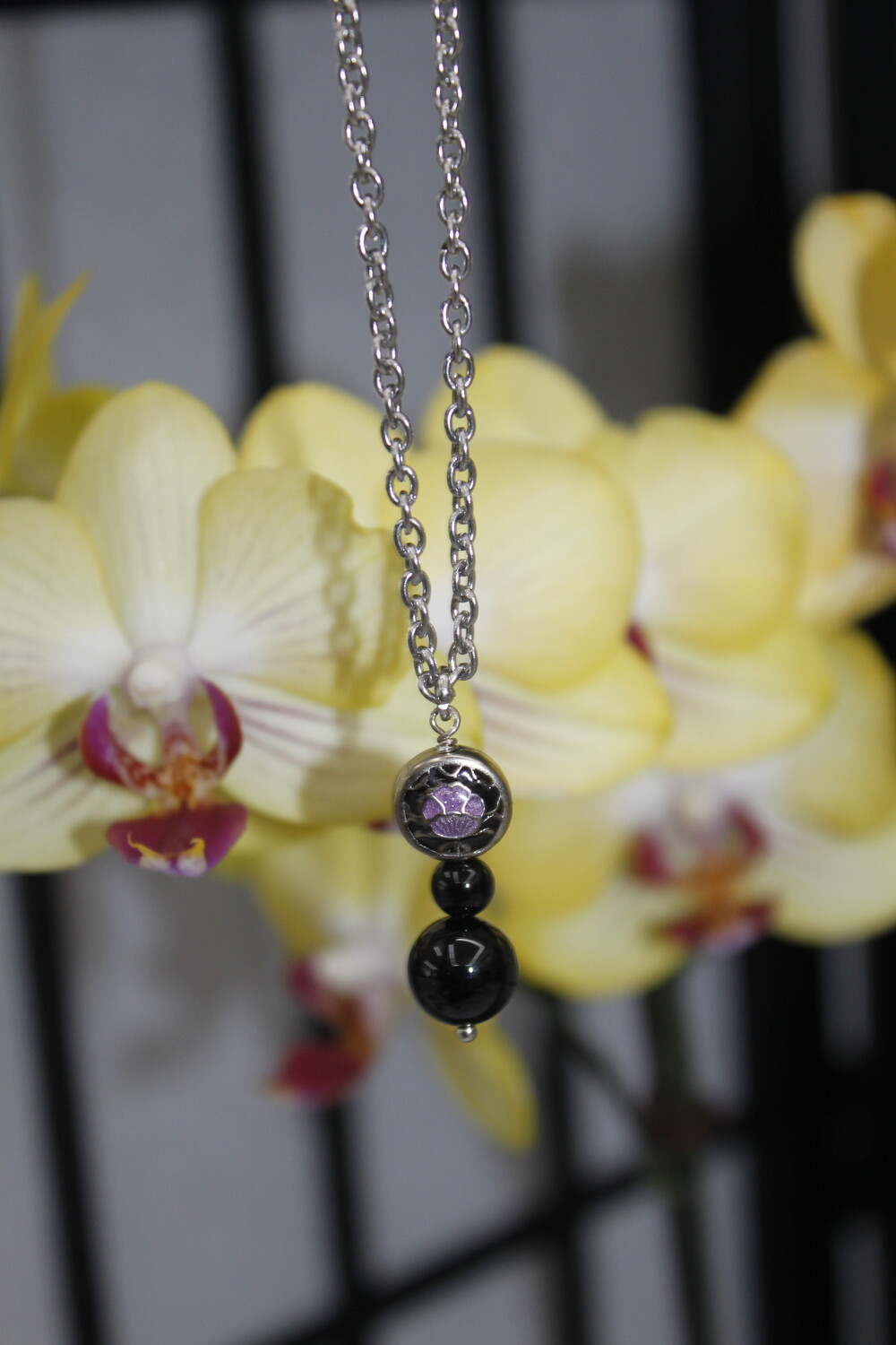 보라색 꽃의 오리엔탈 무드 펜던트와 오닉스 원석으로 이루어진 목걸이 입니다